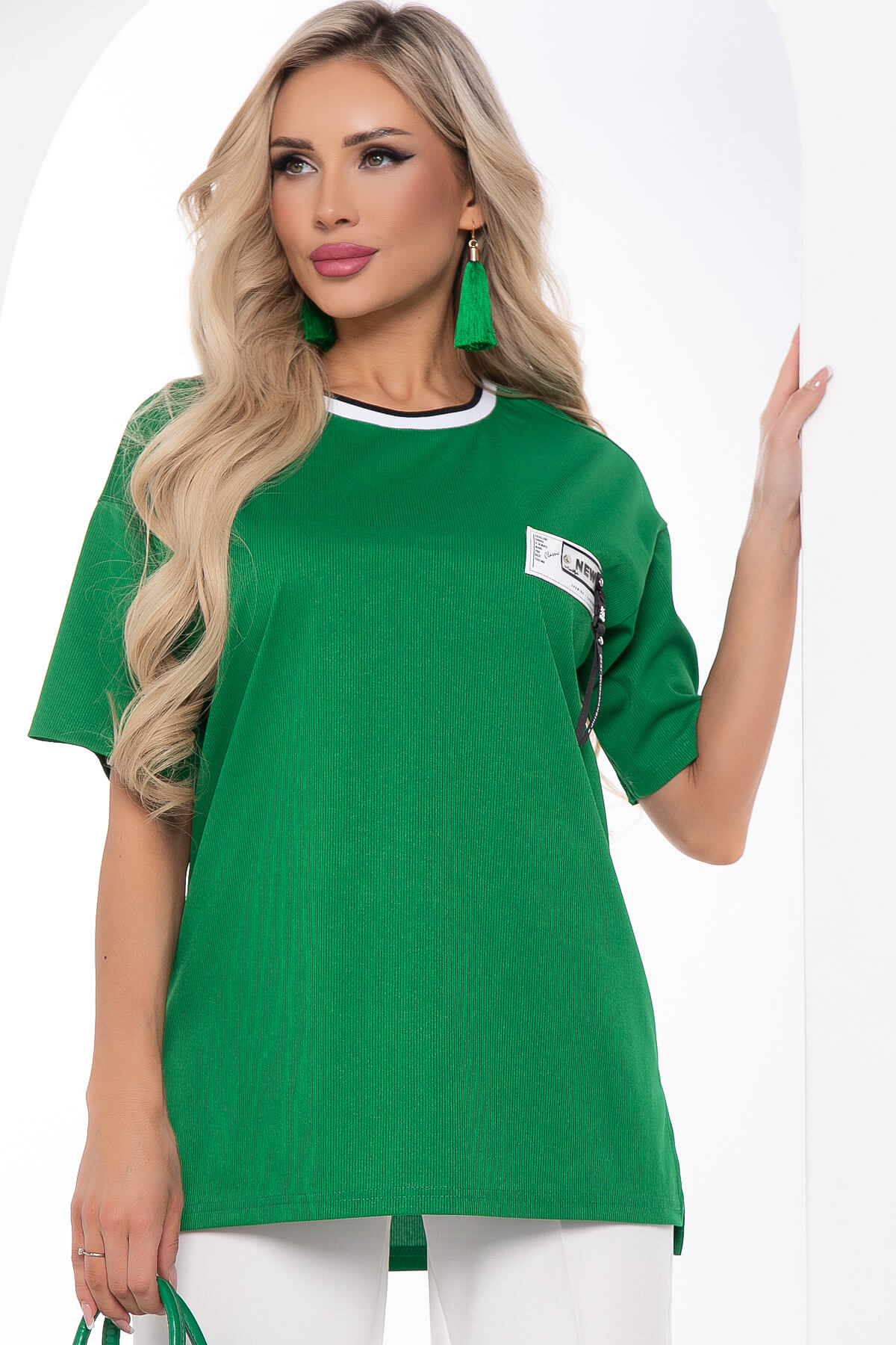 Футболка из трикотажа "Лапша" идеальный вариант на каждый день! Изделие украшает нашивка спереди на груди. Рукав укороченный, со спущенным плечевым швом. Идеально смотрится с джинсами, брюками. Акцентный воротник придает особый шарм!