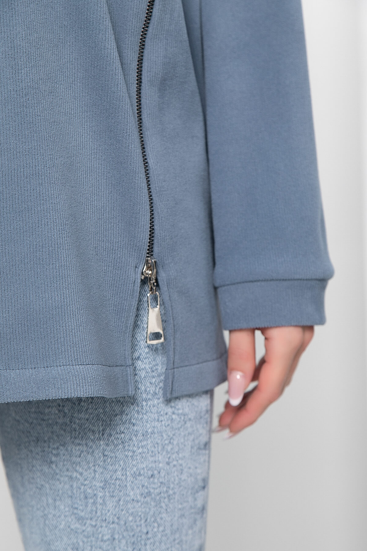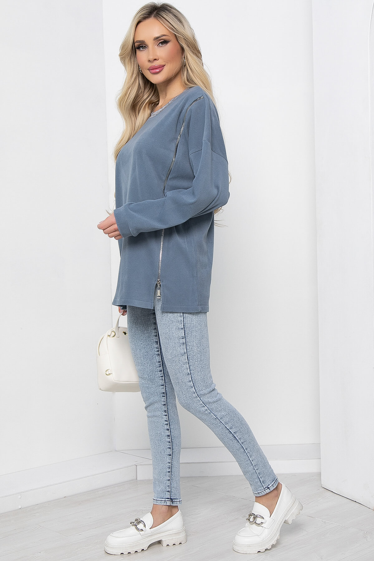 Комфортный и практичный джемпер с функциональными замками по бокам. Округлый вырез акцентирован серебристой горловиной. Длинный рукав со спущенной линией плеча. Такой трикотажный джемпер отлично будет смотреться как с джинсами, так и с брюками. Свободный крой позволит чувствовать себя уютно на прогулке, не сковывая ваших движений.