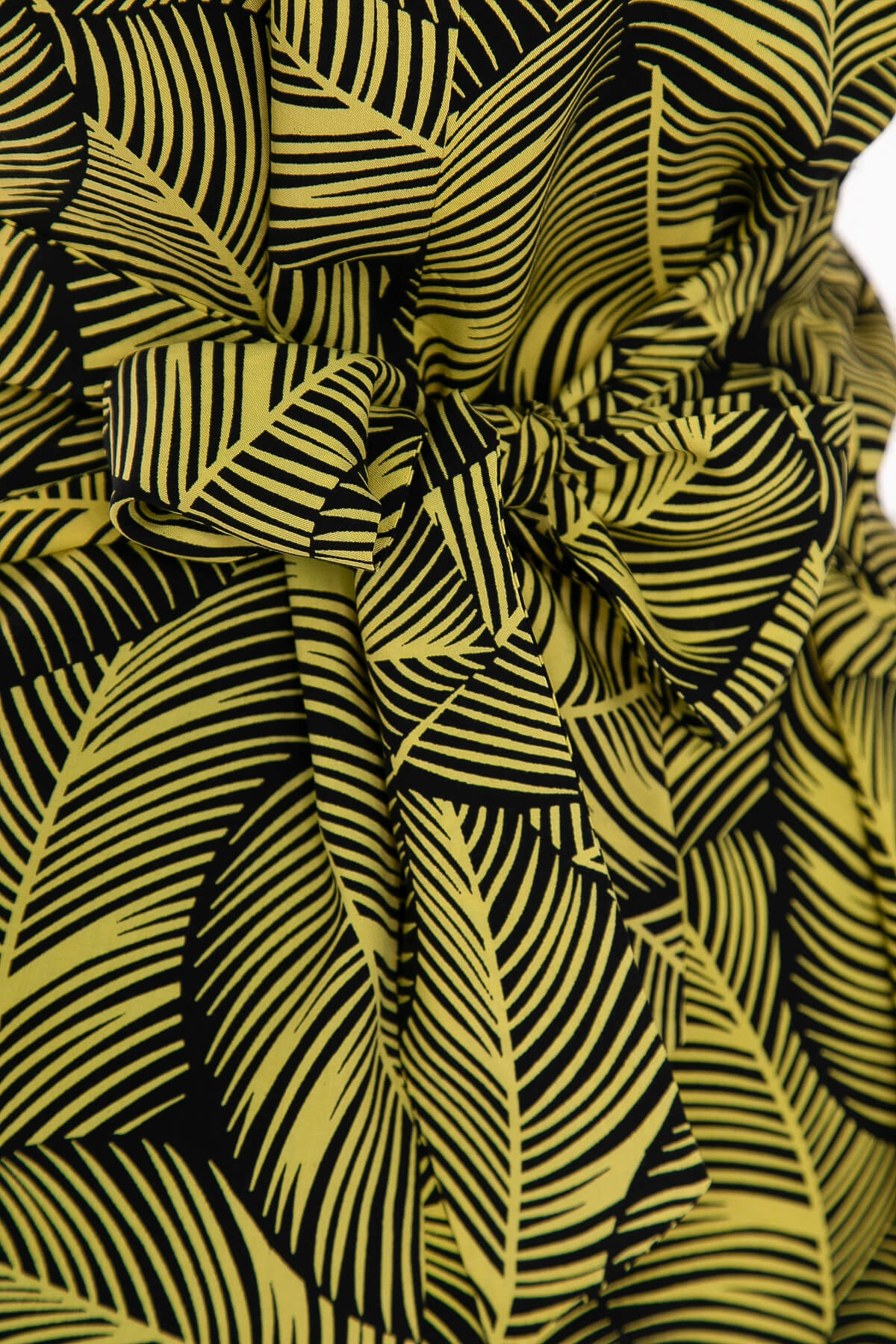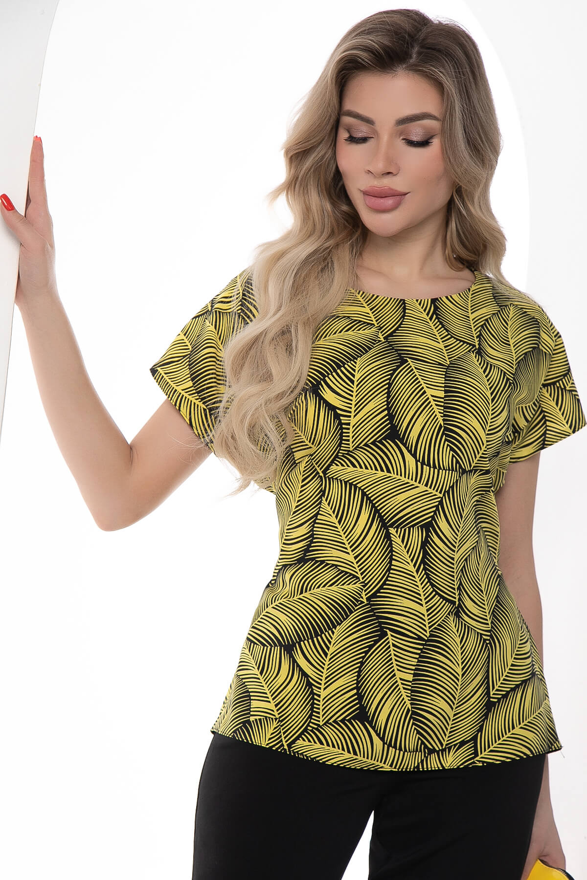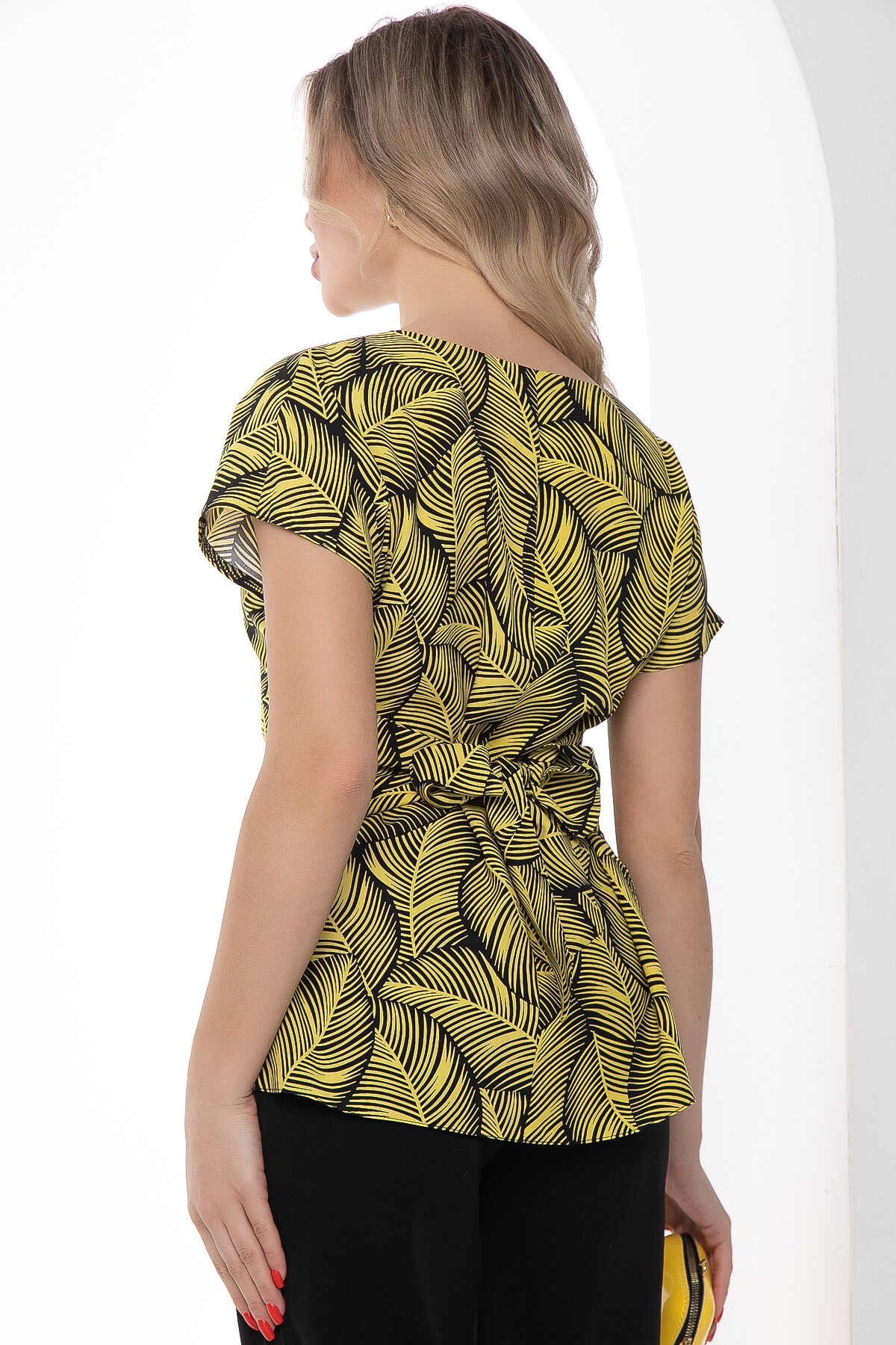 Стильная блуза, которая позволит подчеркнуть все тонкости фигуры. Изделие будет отлично смотреться с брюками или с джинсами. Рукав укороченный, цельнокроенный. Пояс из основной ткани вшит в боковые швы изделия: его можно завязать по передней части либо по задней части изделия.
