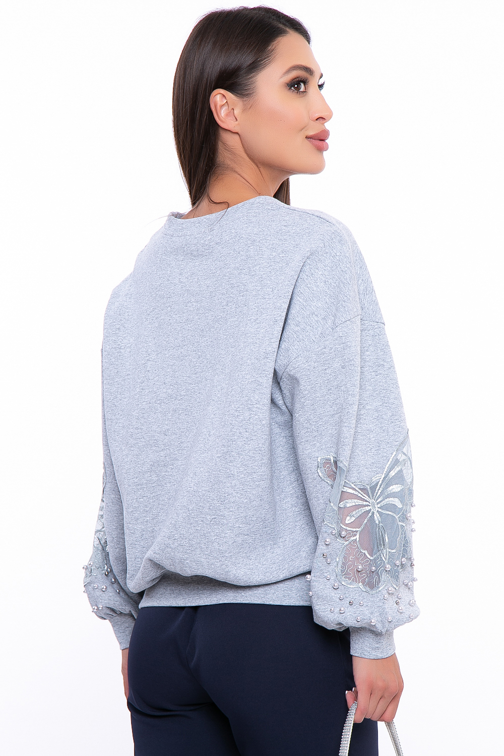 - Джемпер из мягкого трикотажа в базовом сером оттенке;