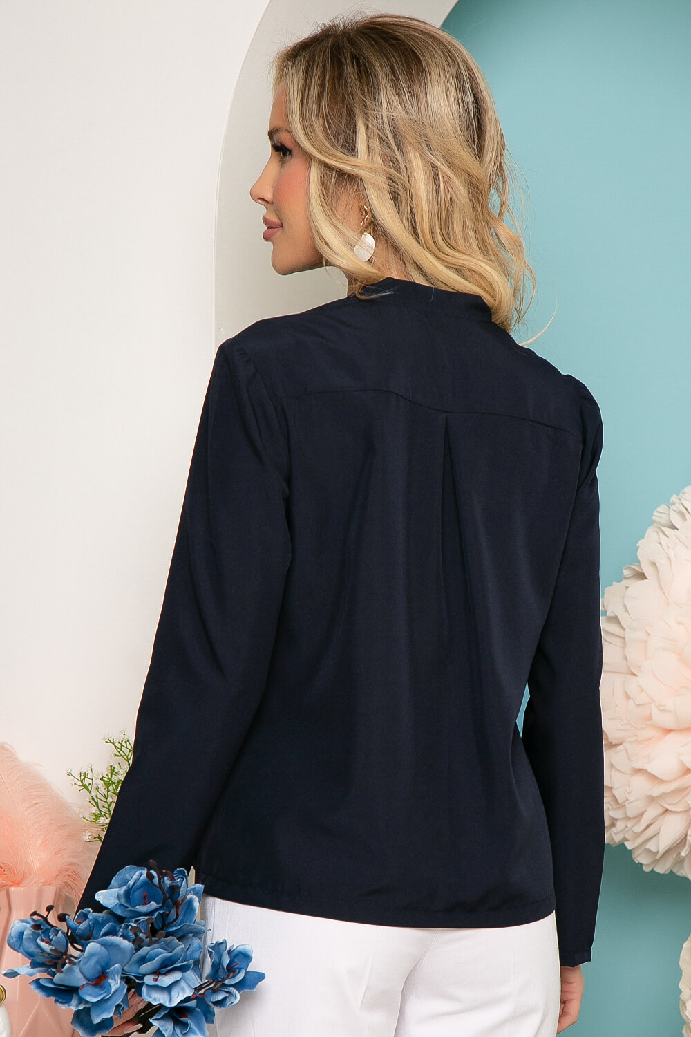 Пожалуй, самым основным базовым элементом в гардеробе является блуза! Она может стать отличной основой для создания самых разных стильных образов. Универсальная блуза прямого силуэта, выполнена из приятной к телу ткани, в красивом синем оттенке. V-образный вырез, формирующий стойку по спинке, подчеркивает зону декольте. Акцентные плечевые швы оформлены сборками. Рукав втачной. Застегивается по переду на пуговки золотого цвета. По спинке широкая кокетка со сборкой.