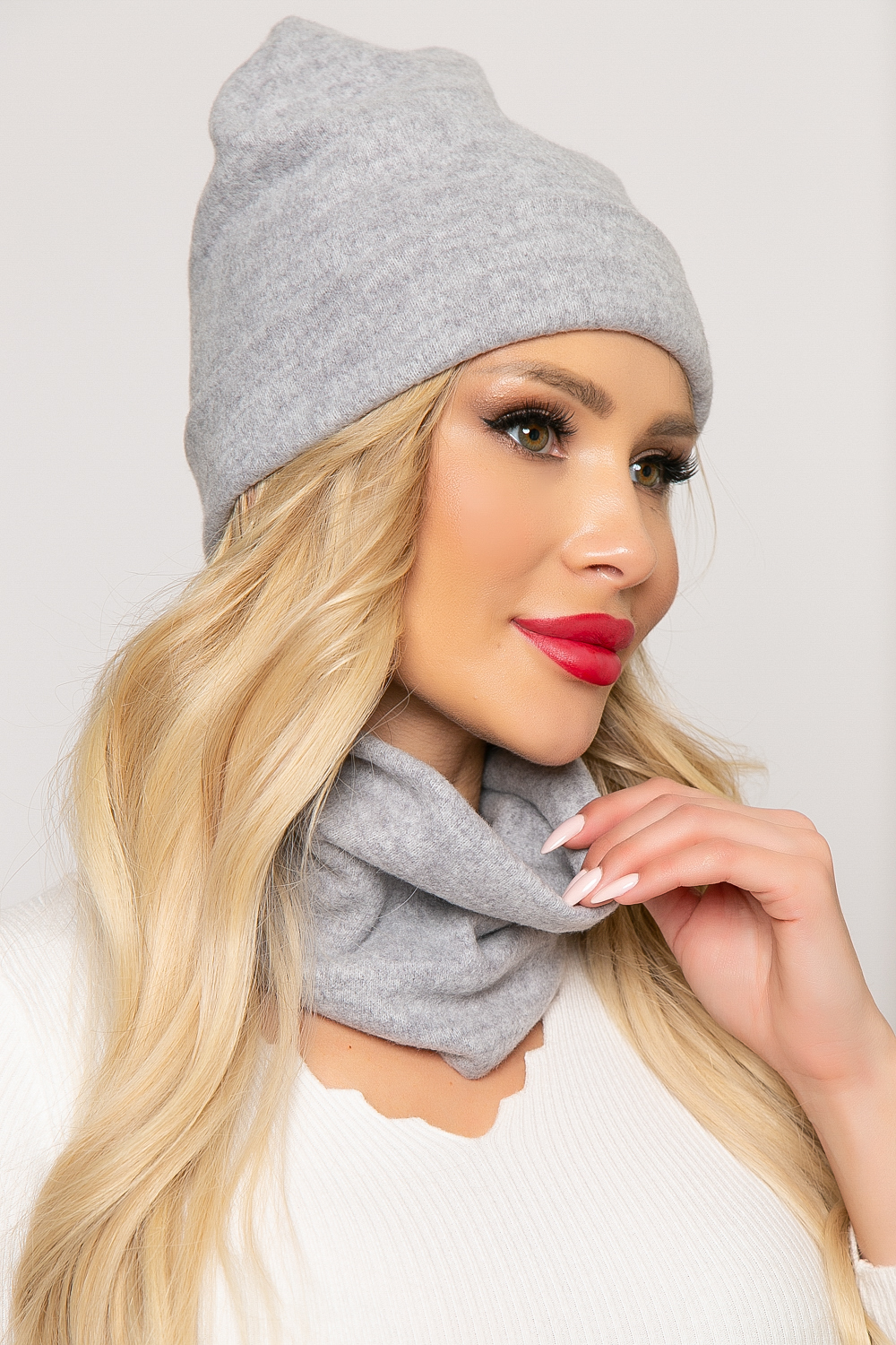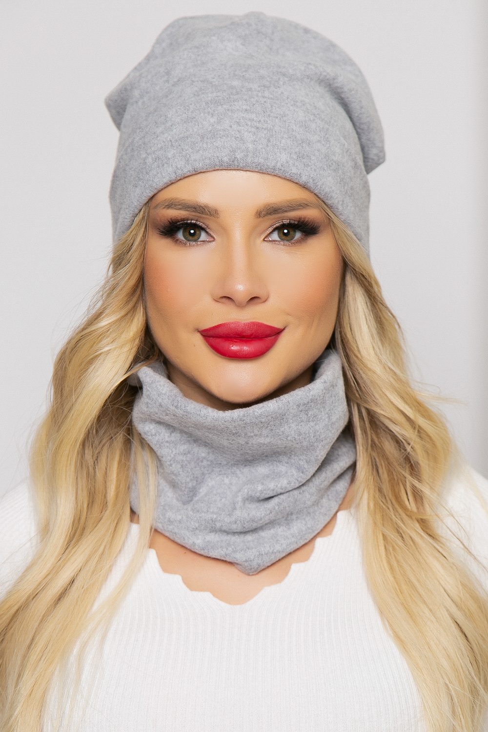 Стильная шапка из мягкой ангоры согреет Вас в прохладную пору. Шапка имеет универсальную форму и подходит для любой формы лица. Можно носить с отгибкой и без. Однослойный снуд позволит защитить шею от ветра.