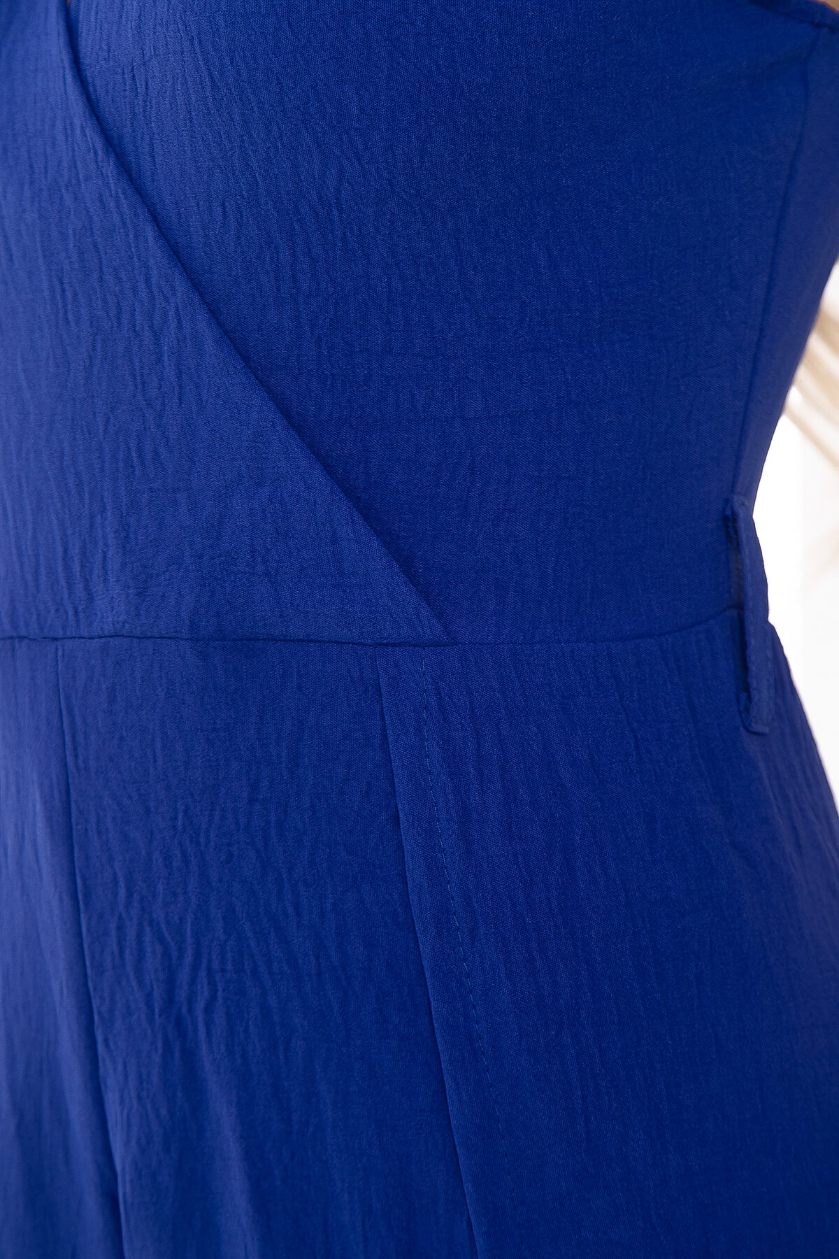 Шикарный комбинезон полуприлегающего силуэта без рукавов, подходит для любой фигуры. Умеренно-глубокий V-образный вырез сбалансирован макси длиной и полностью закрытой спинкой. Легкая драпировка в области груди добавляет немного объёма в нужном месте, а пояс на шлевках в комплекте эффектно подчеркивает линию талии, что обеспечит вашему образу утонченный стиль. Запахивающиеся штанины брюк придают всему образу легкость и чувственность, добавляя неотразимости. Застежка на потайной молнии по спинке. Без подкладки.