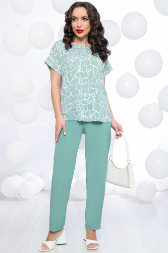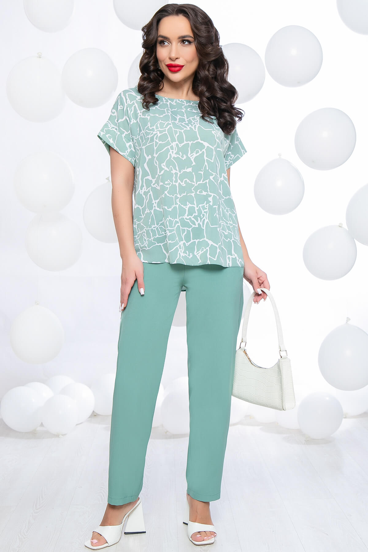 Брючный костюм - это идеальный образ на любой случай. Он прекрасно впишется в Ваш гардероб. Женственная блуза свободного кроя с вырезом лодочка отлично смотрится даже без украшений. По бокам есть разрезы. Брюки классические, талия на резинке.
