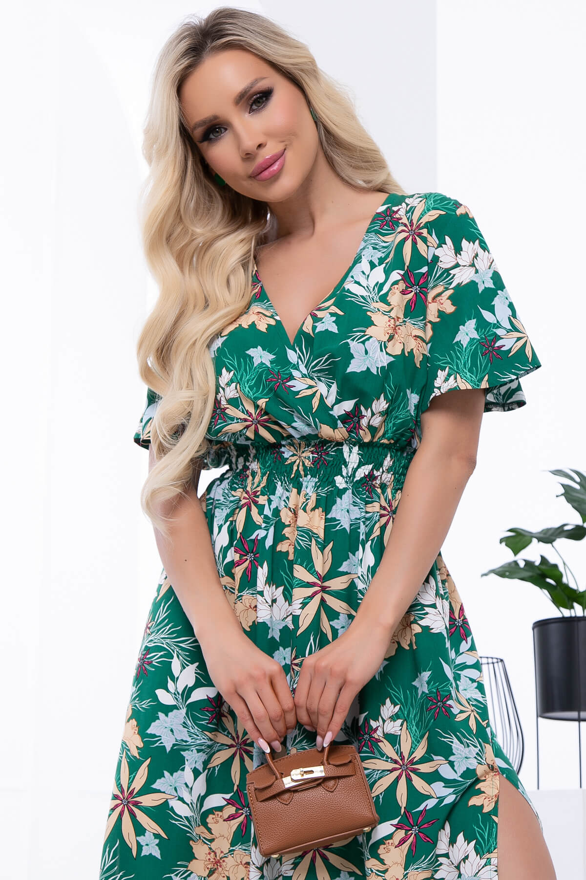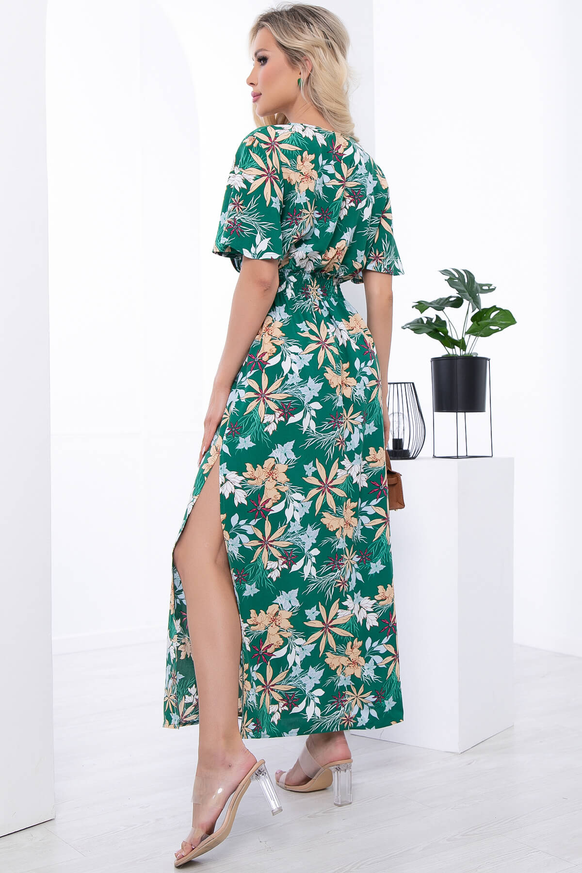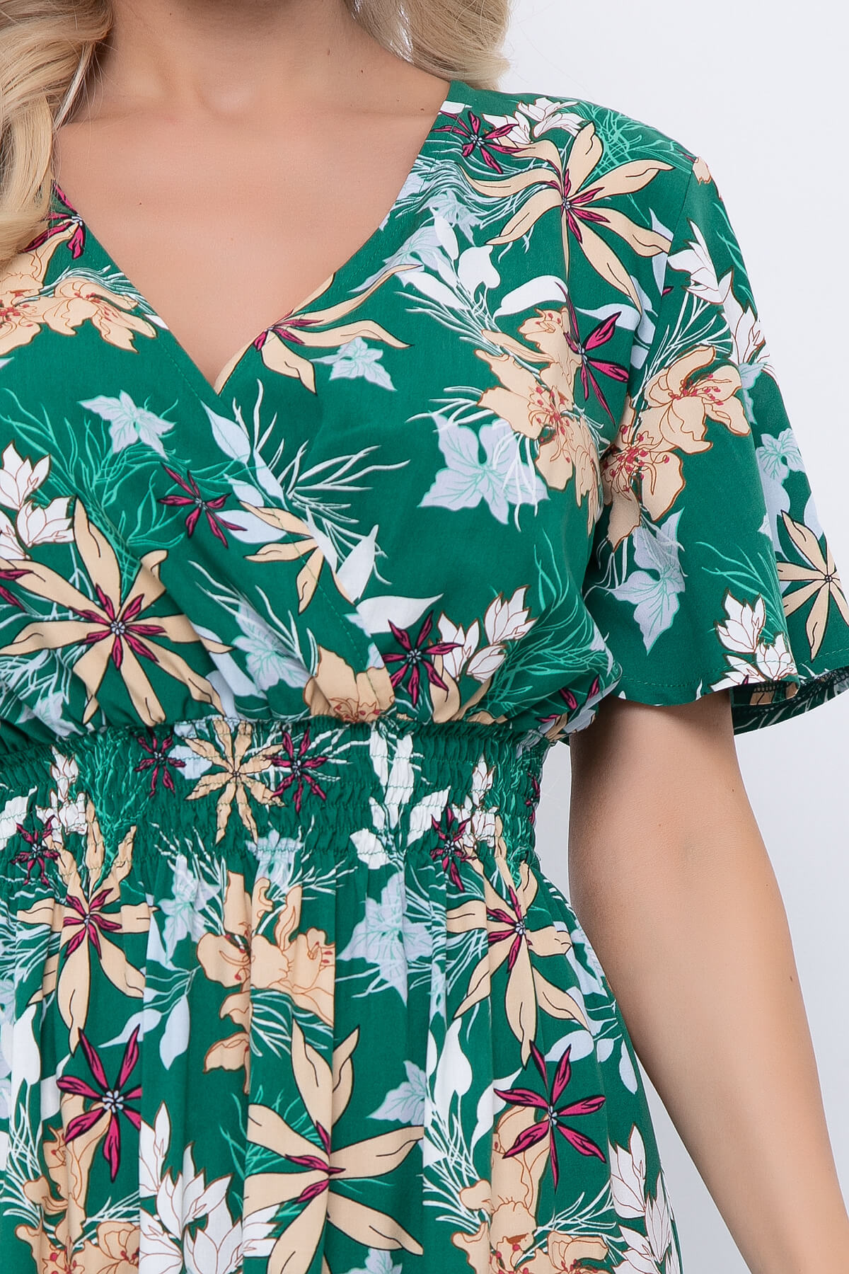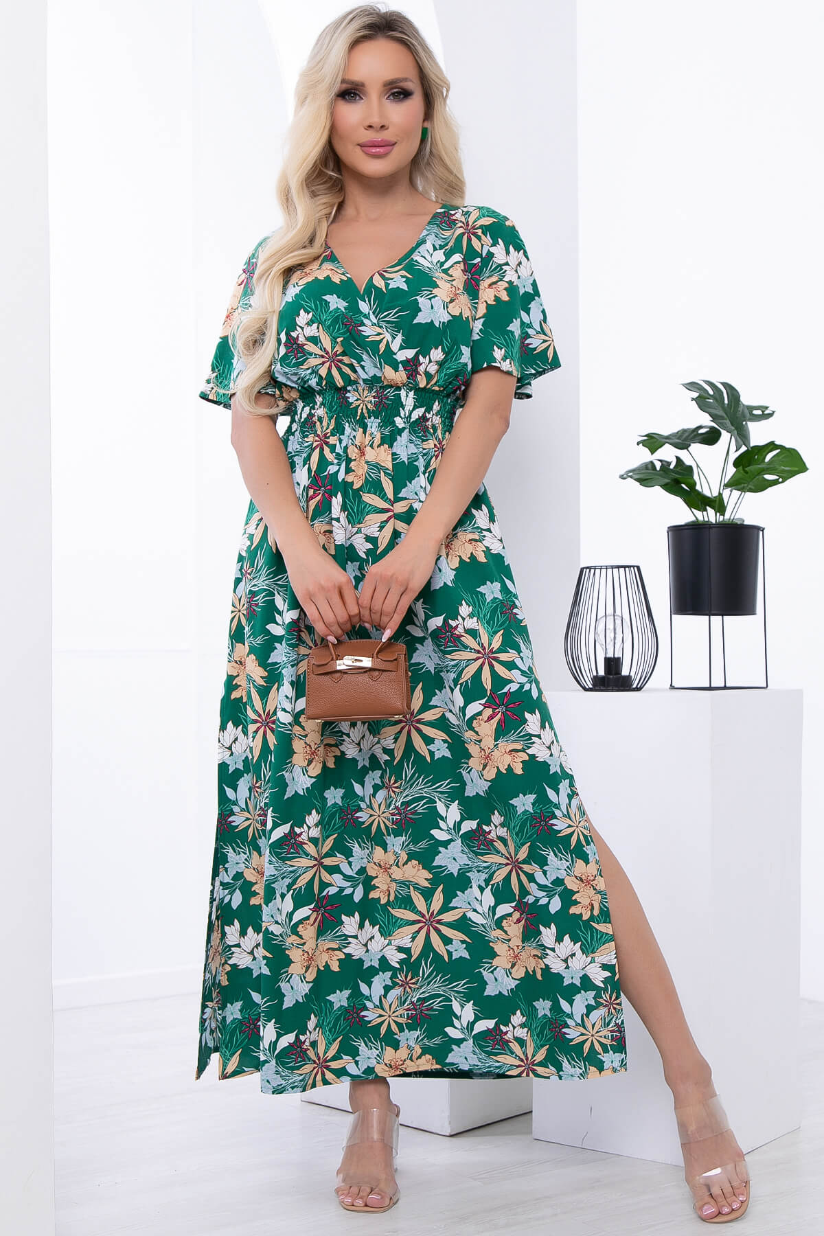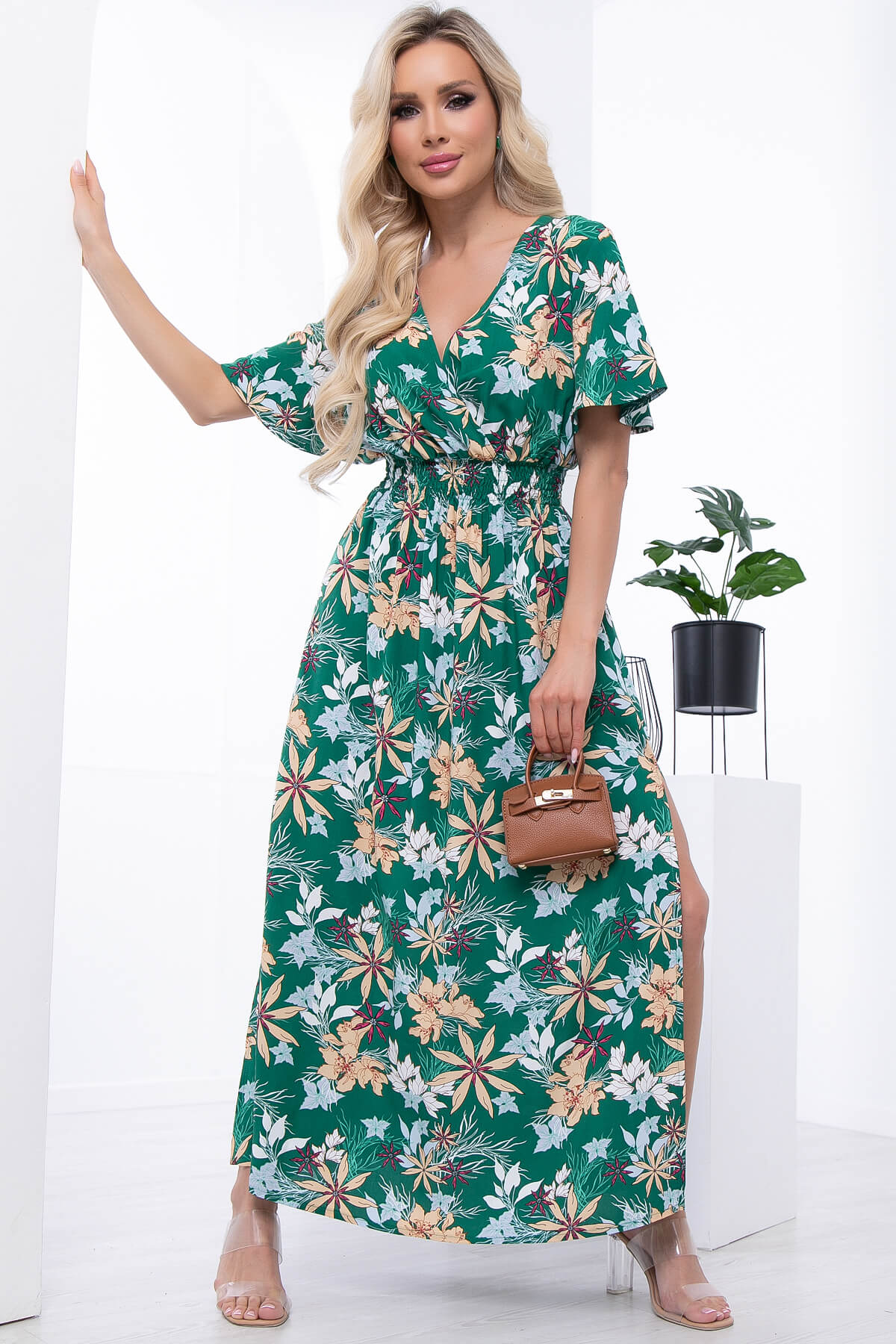 Яркое летнее платье придаст вам чувство легкости и воздушности. Оно точно поднимет Вам настроение на целый день! Талия на резинке. По низу изделия в боковых швах разрезы придадут образу женственности. Платье по талии на широкой резинке.