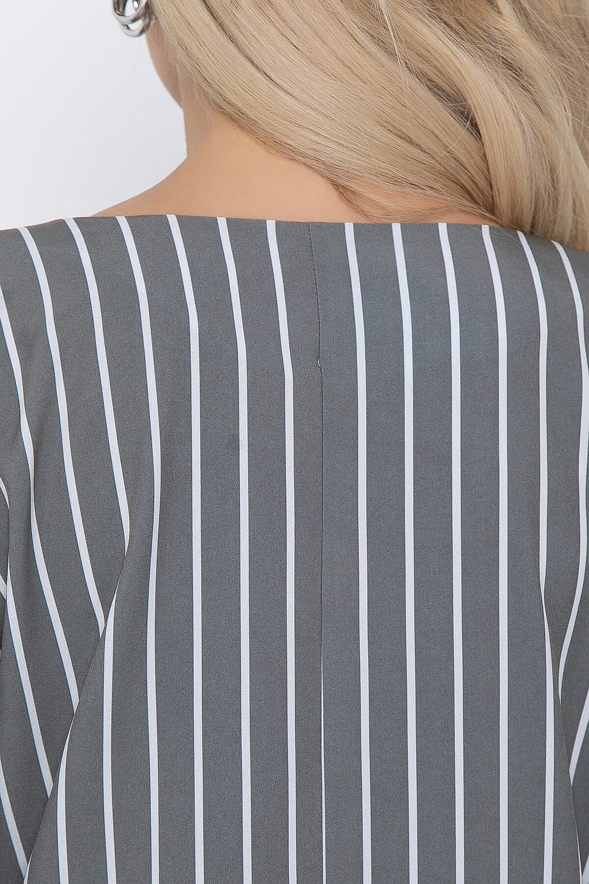 Оригинальное и стильное платье свободного силуэта в полоску для создания повседневного образа. Комфортная модель скроена для любого типа фигуры и отлично подойдет для офисного или повседневного образа. Рукав по типу "летучая мышь", 3/4. По передней части изделия кокетка и планка с декорированными пуговицами.