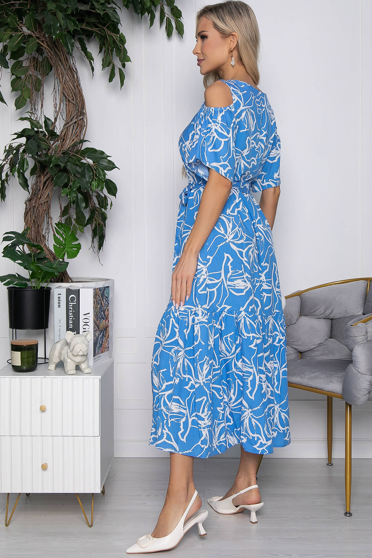 Шикарное платье с акцентными рукавами не оставит без внимания окружающих. Вырезы на плечах придадут утонченность и добавят образу кокетства. Платье можно носить, как с поясом, подчеркивая всю красоту фигуры, так и без - тогда образ получится более расслабленный.