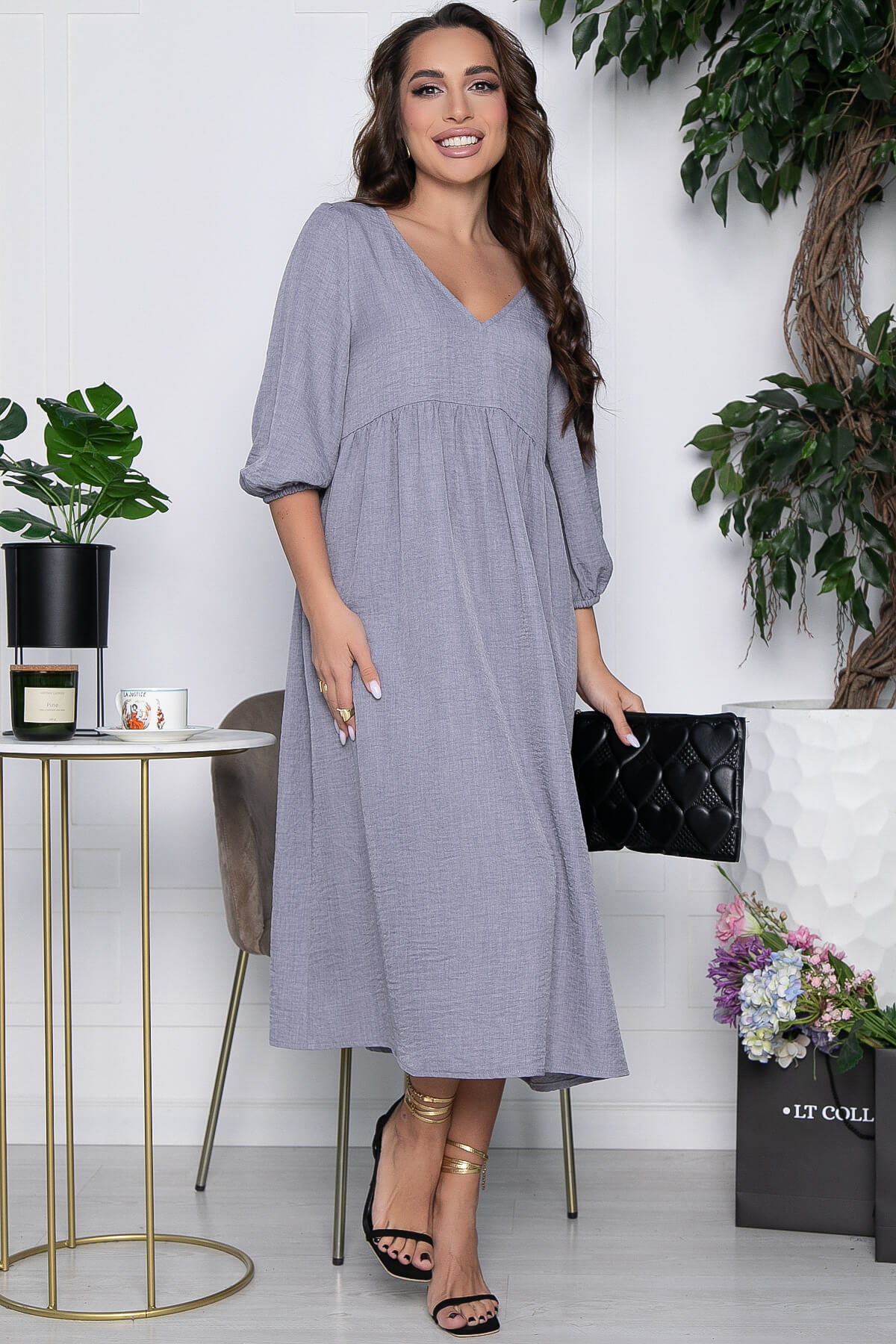 Невесомое воздушное серое платье с эффектом жатки! Благодаря своему крою оно будет удобно для беременных и будущих мам на выписку. Талия завышенная, вырез V-образный спереди и сзади. Низ рукавов на резинке.