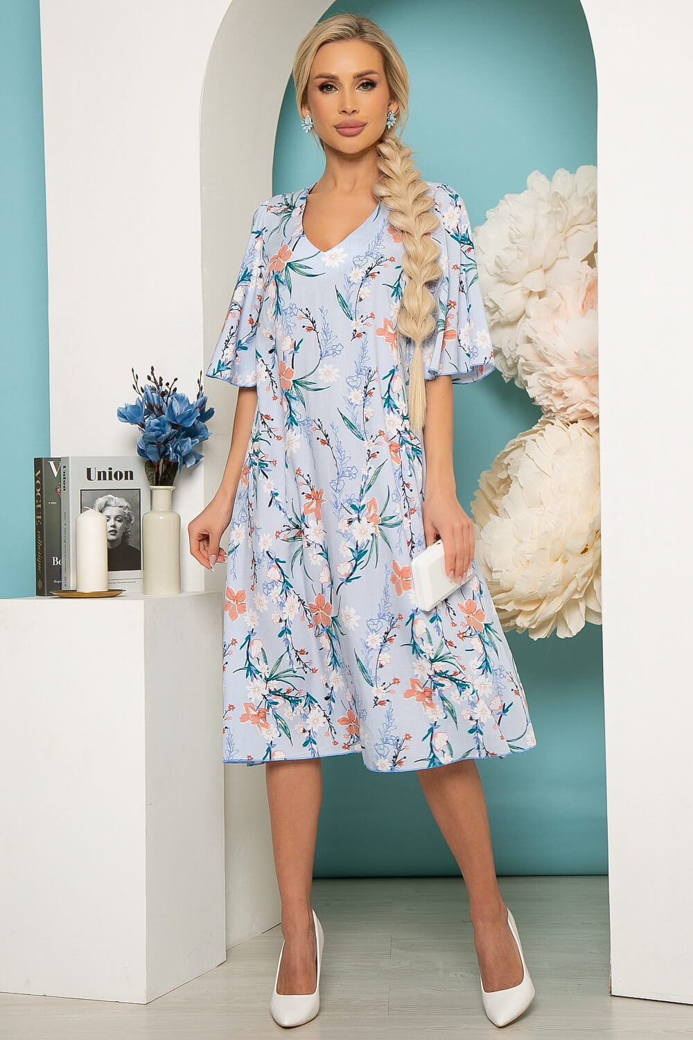 - Цвет: нежно-голубой, принт: флористический;