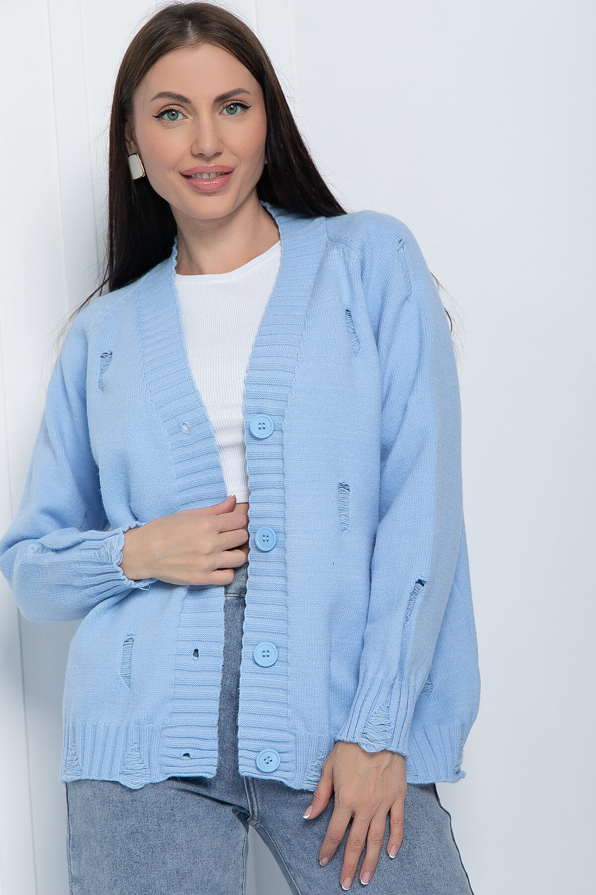 Кардиган на пуговицах с рваными элементами — это универсальный предмет гардероба, который можно носить в самых разных ситуациях: в школе, в офисе, на деловой встрече или празднике. Его однотонный оттенок позволяет легко сочетать с другими вещами. А благодаря оверсайз силуэту он будет удобен для беременных и будущих мам.