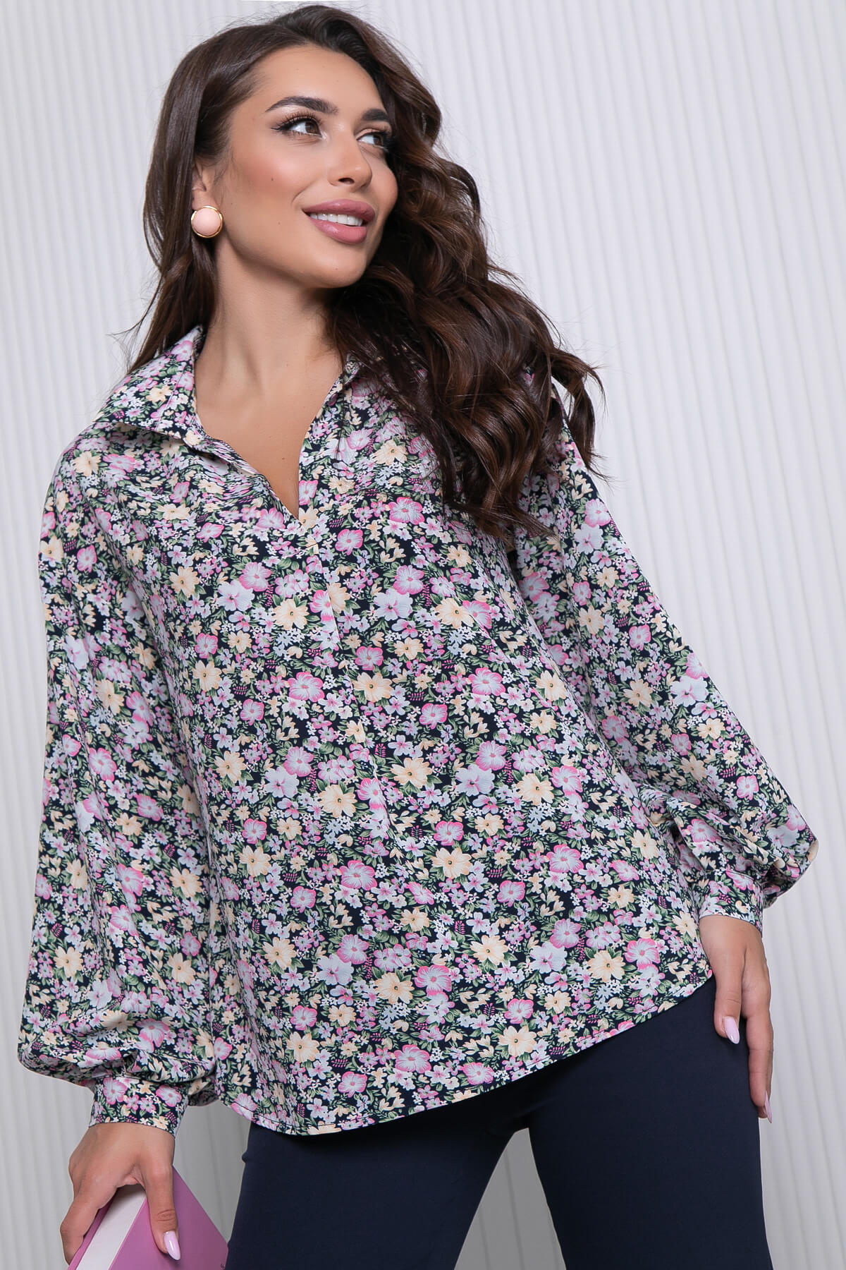 Блуза свободного кроя в красивой расцветке. Акцентной деталью являются широкие рукава на манжетах, которые добавят образу воздушность. Линия плеча спущена. Данная модель комбинируется практически с любым низом, будь то брюки, юбка или летние шорты.