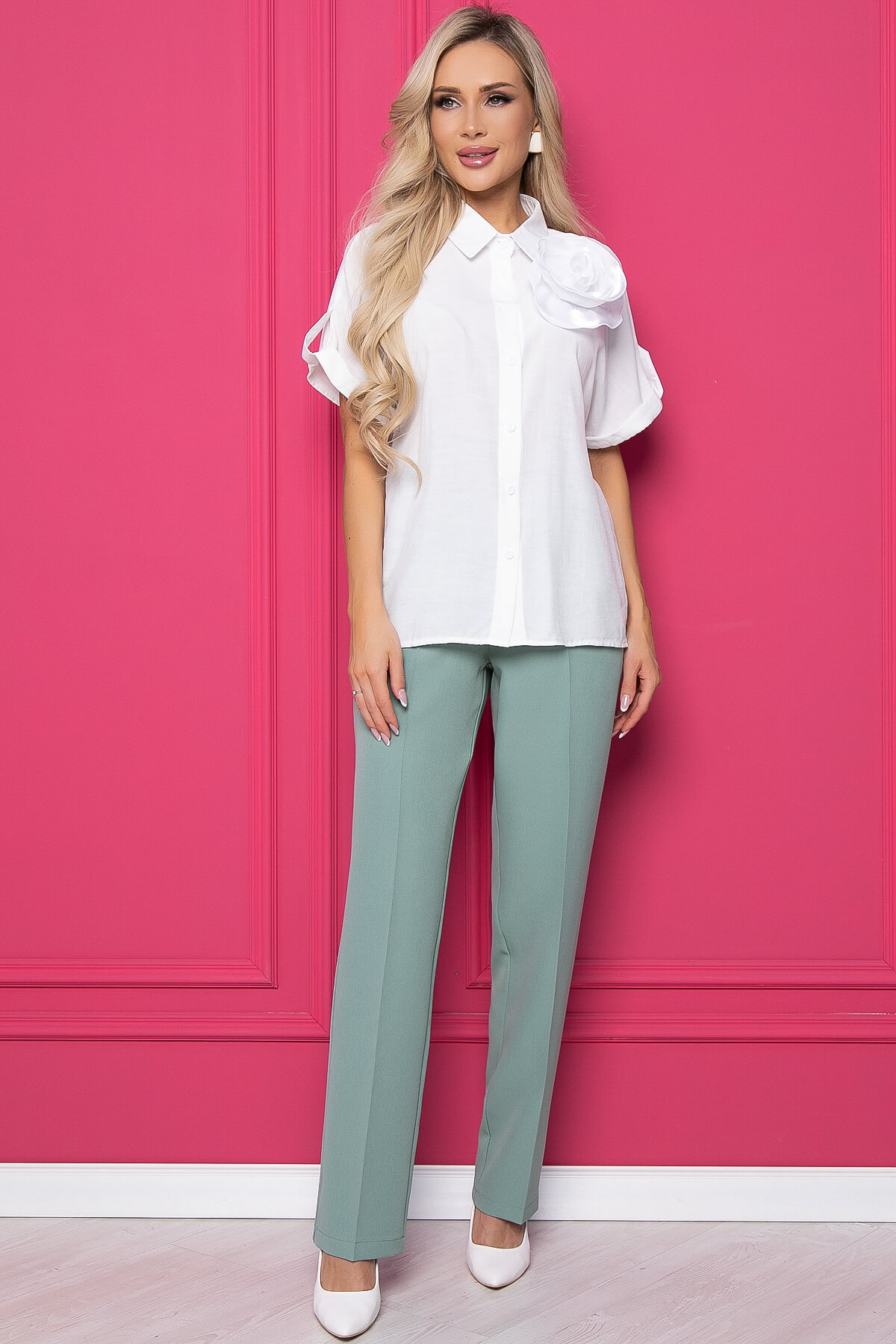Элегантная легкая блуза на каждый случай! Идеально сочетается с брюками и юбками. Подходит для повседневных прогулок или для создания праздничного образа. Рукав цельнокроенный, укороченный, с патой. В комплект входит брошь "роза", которая придает образу особый шарм и подчеркивает женственность и утонченность.