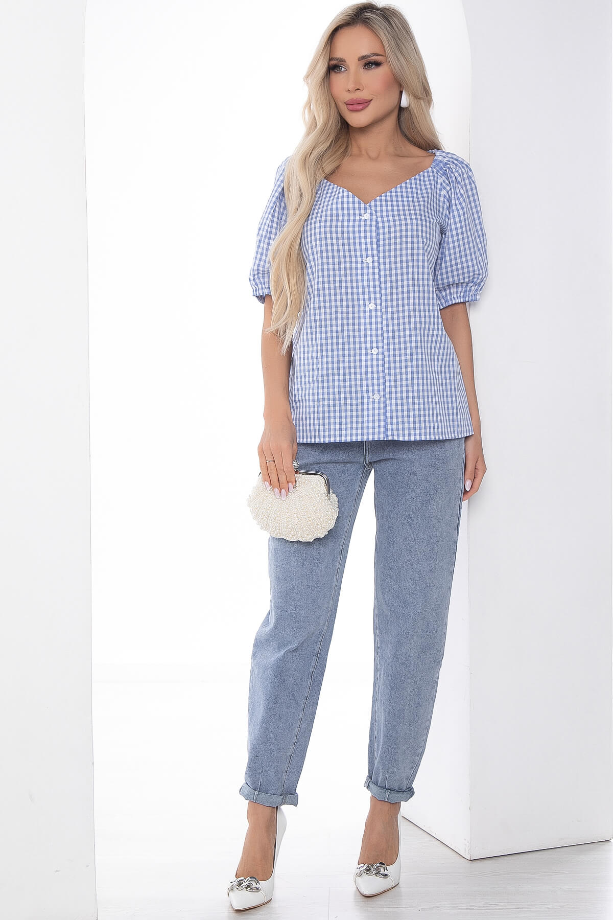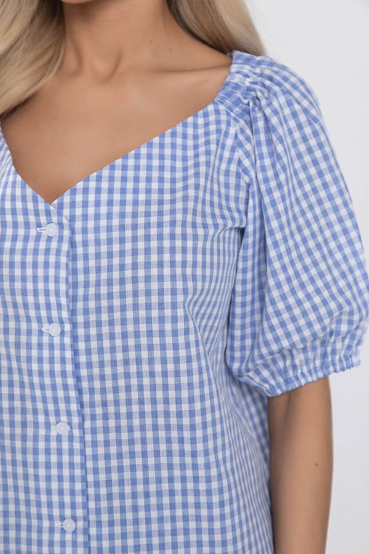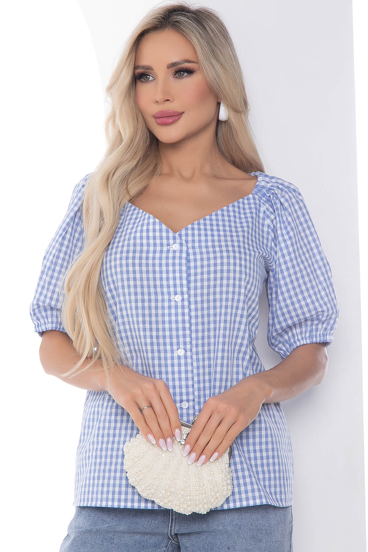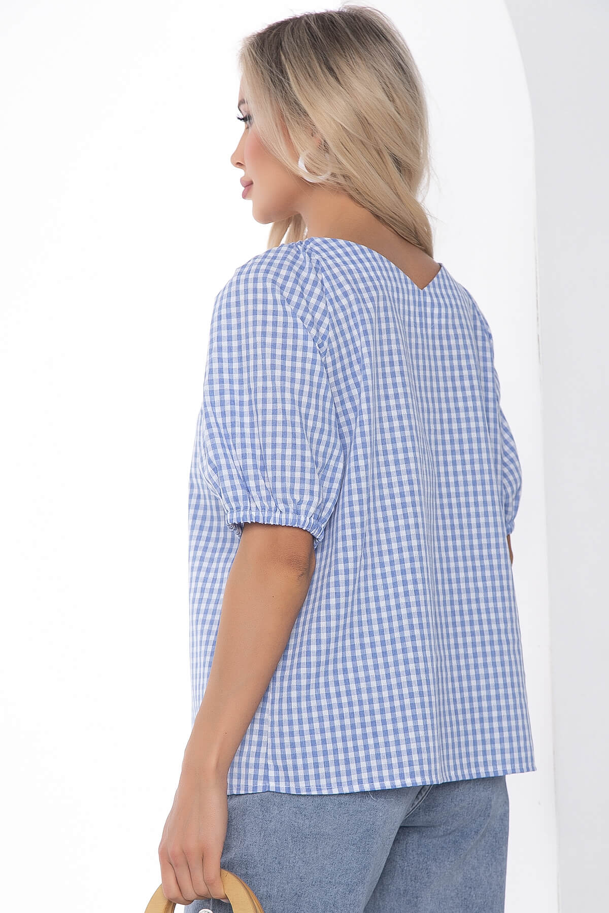 Легкая и воздушная блуза в клетку свободного кроя. Комфортная эластичная резинка на плечах позволяет сделать блузу еще более женственной. Рукав - реглан укорочен и собран на резинку. Такая модель женской блузы отлично будет сочетаться как с джинсами, так и со светлыми брюками любого кроя.