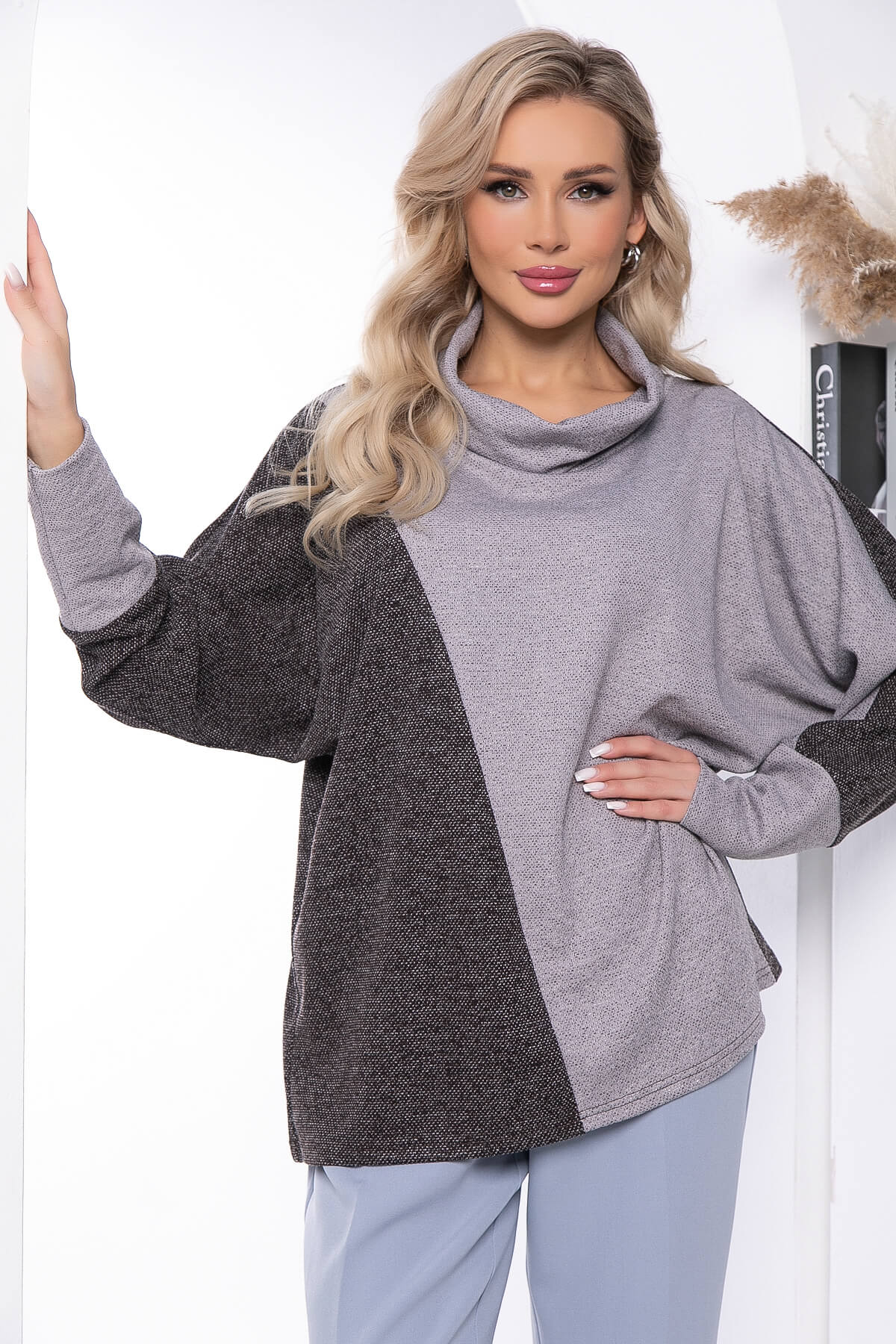 Тёплый и уютный джемпер из трикотажа настоящая находка в прохладную погоду! Джемпер удлиненный и поэтому хорошо будет смотреться в сочетании с облегающими брюками или лосинами. Рукав длинный, цельнокроенный, по низу широкий манжет. Горловина оформлена воротником "Хомут".