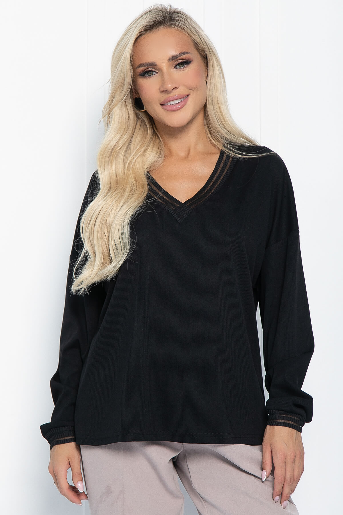 Базовый джемпер подойдёт для создания повседневных и офисных образов. Акцентные вставки из сетки деликатно украшают образ. Изделие имеет полуприлегающий силуэт, втачной длинный рукав со спущенным плечевым швом. Можно носить навыпуск или под заправку. Благодаря своему оттенку хорошо сочетается практически с любым низом.