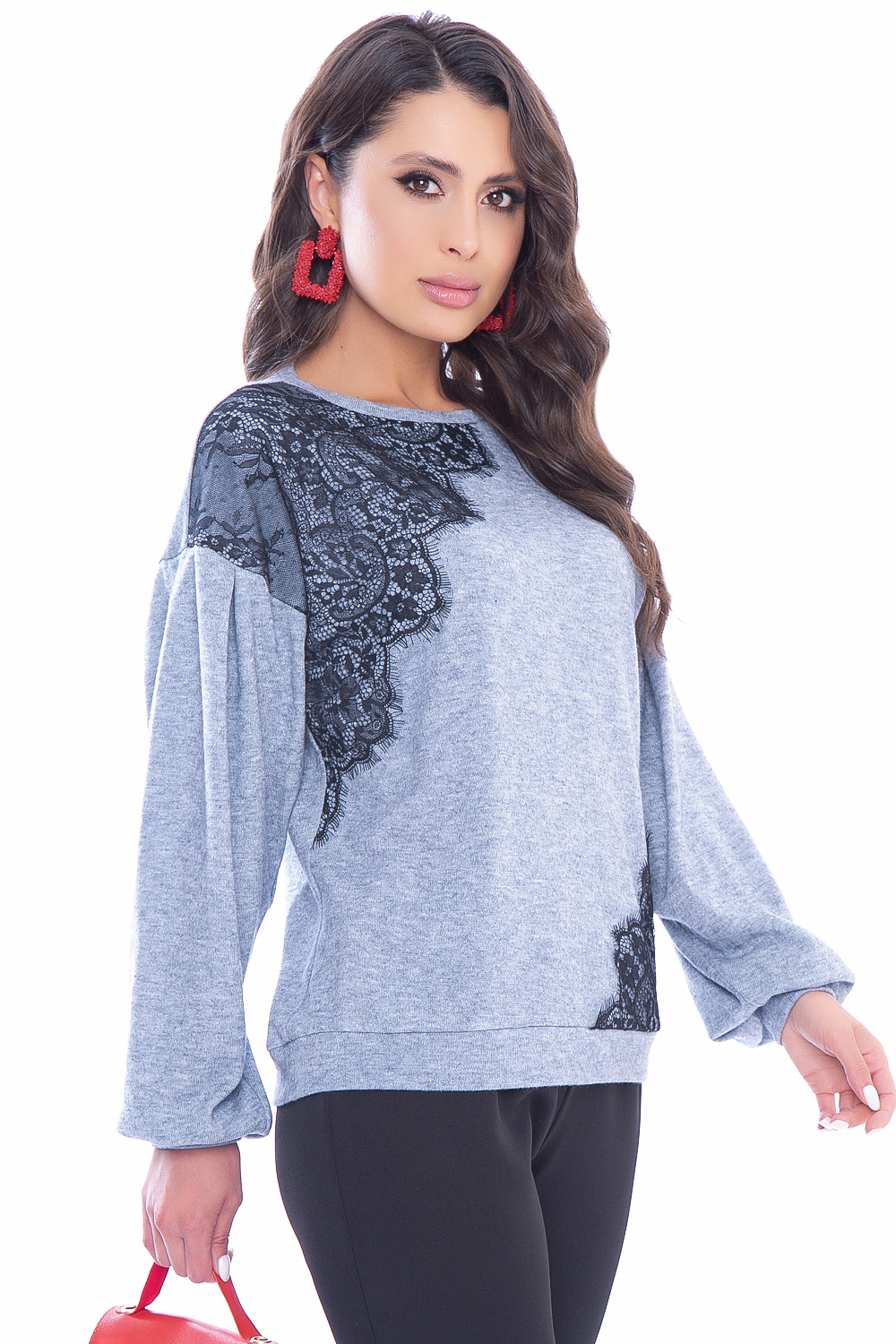 Джемпер с кружевом "Софи" (серо-голубой) Б2764