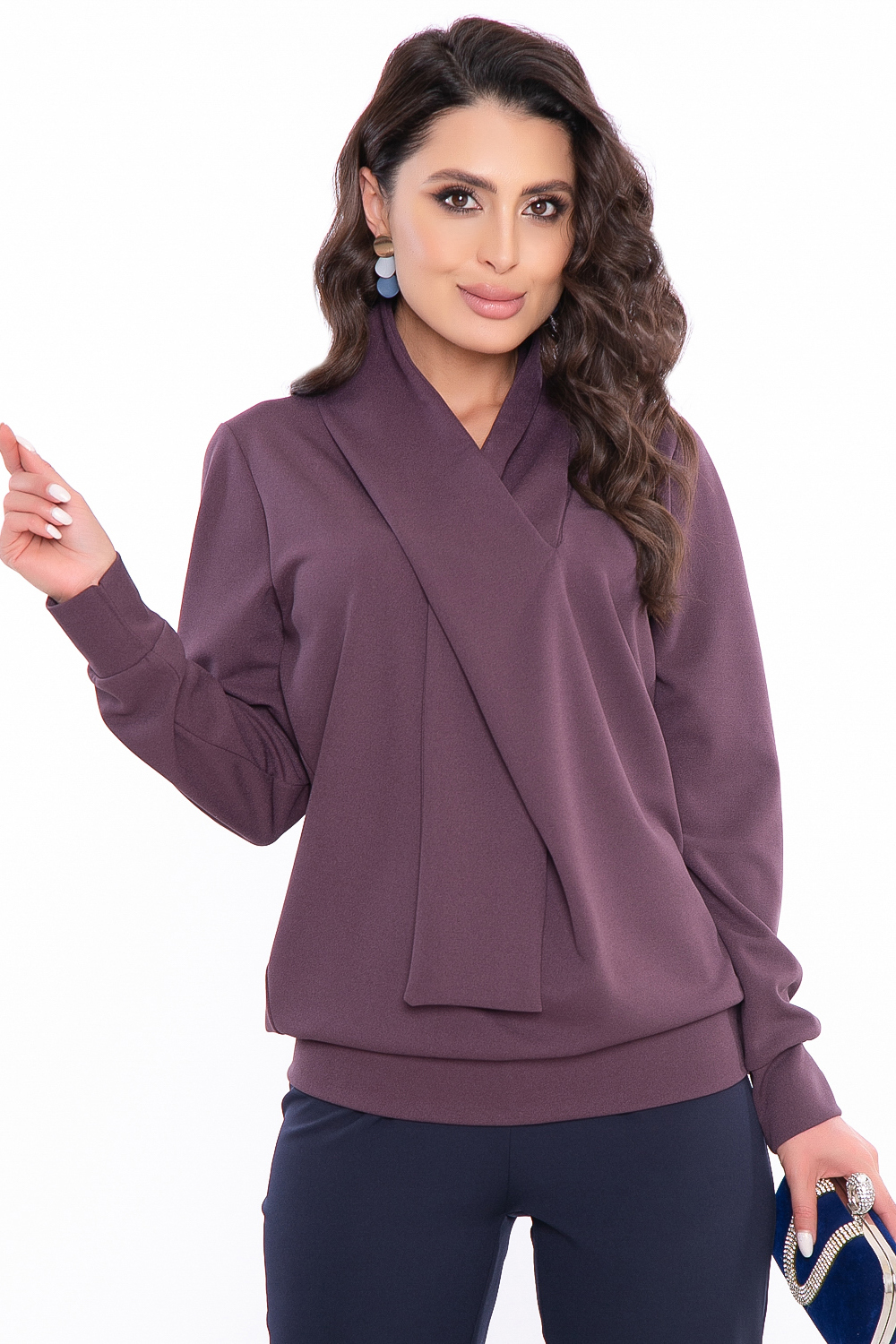 Дизайнерский джемпер с воротником-шарфом в красивом лиловом оттенке. Он однозначно внесет стильный акцент в Ваш повседневный гардероб.