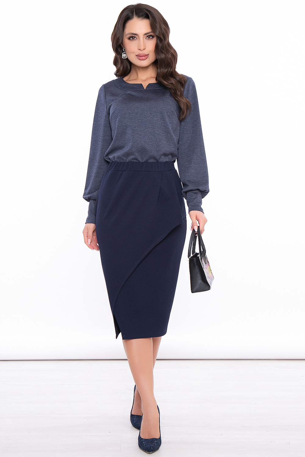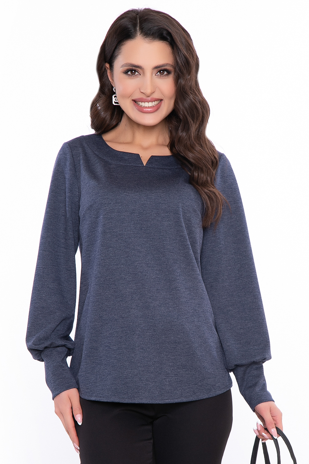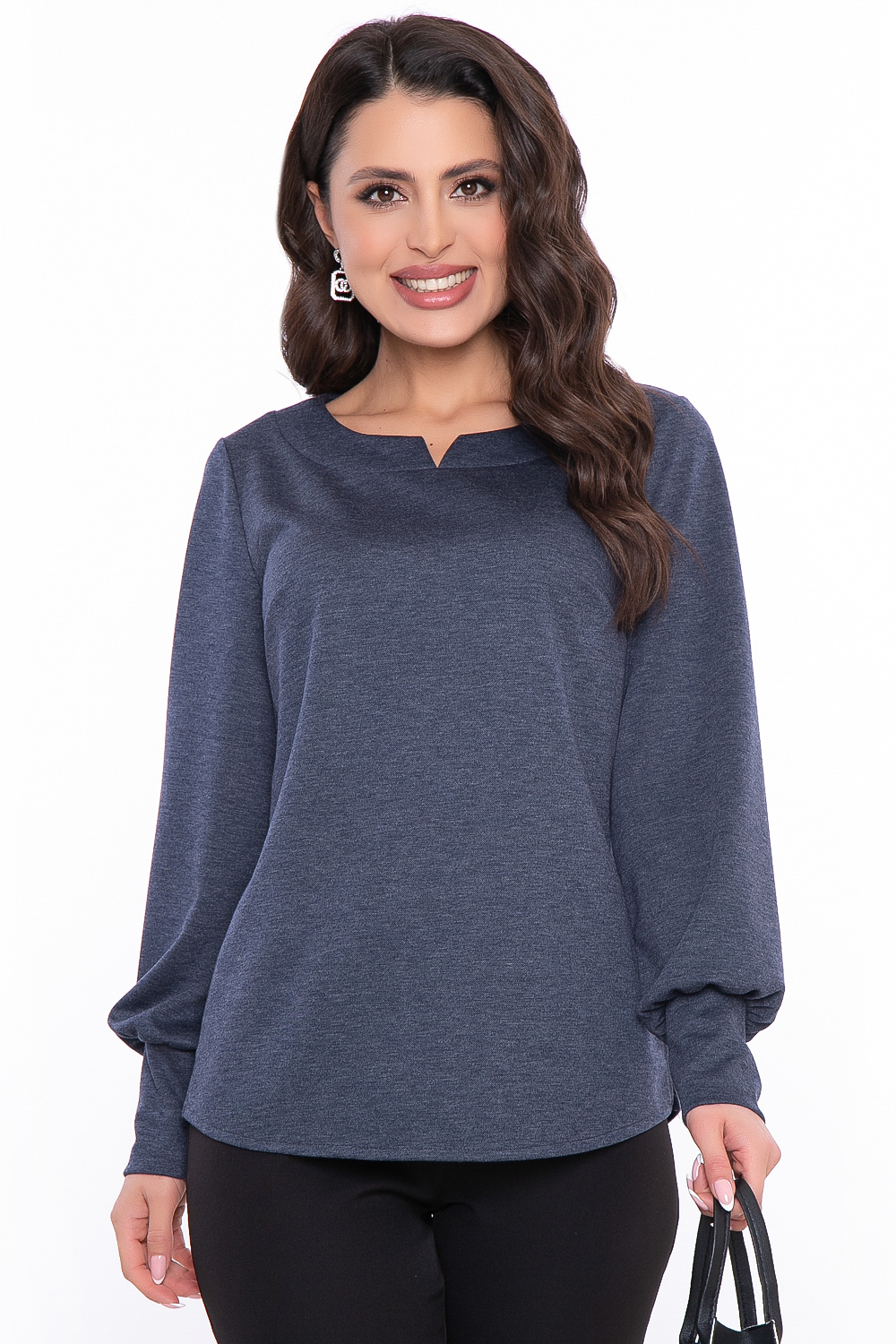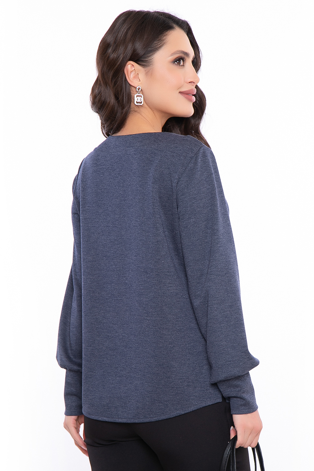 Базовый джемпер в серо-голубом оттенке с красивым акцентом в виде галочки на вороте.