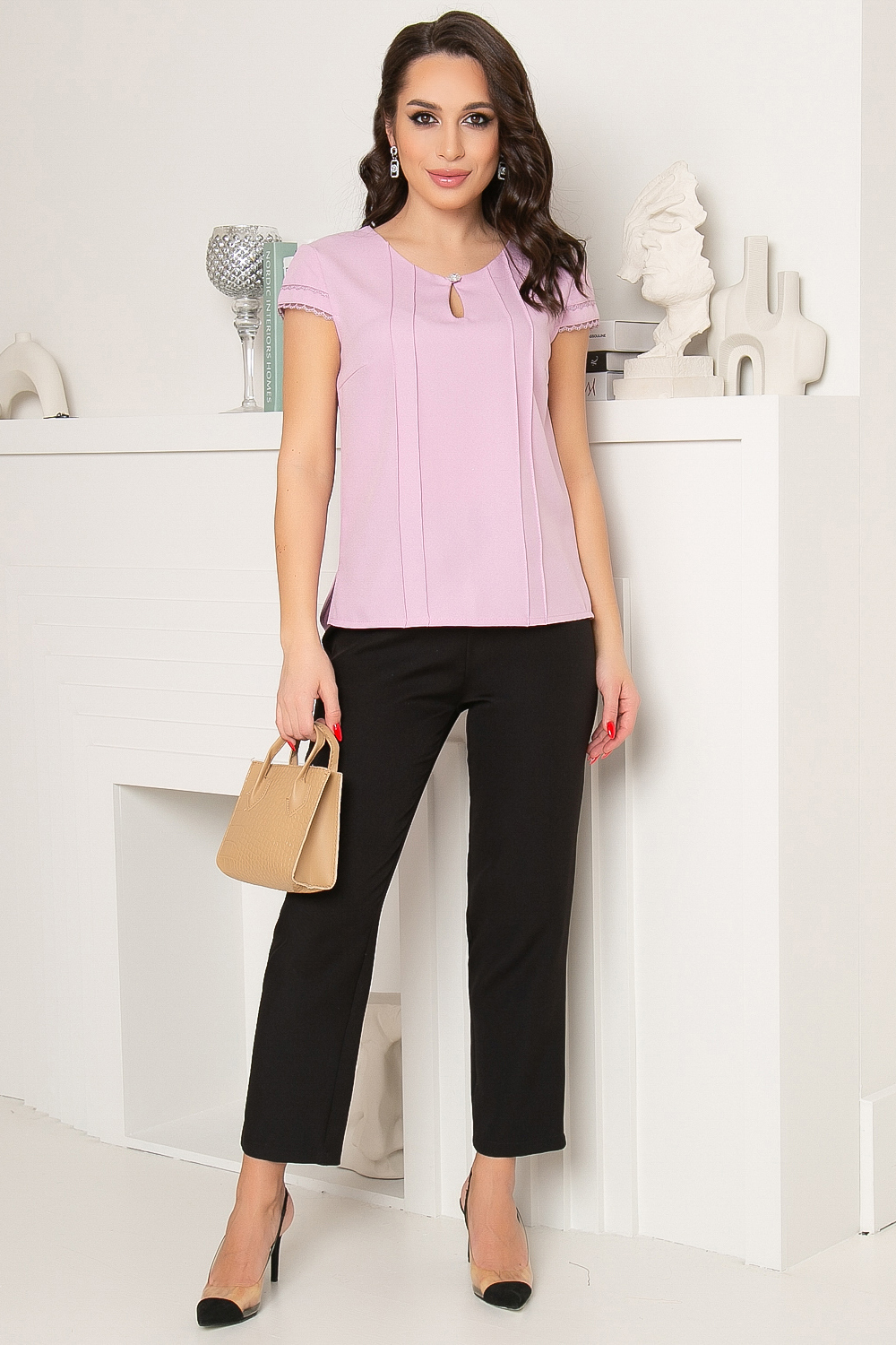 Женственная блуза в нежном лиловом оттенке с кружевом создаст элегантный классический образ.