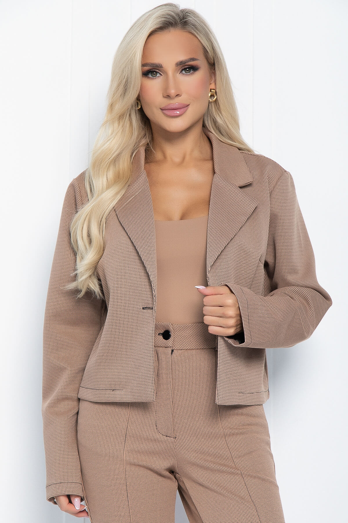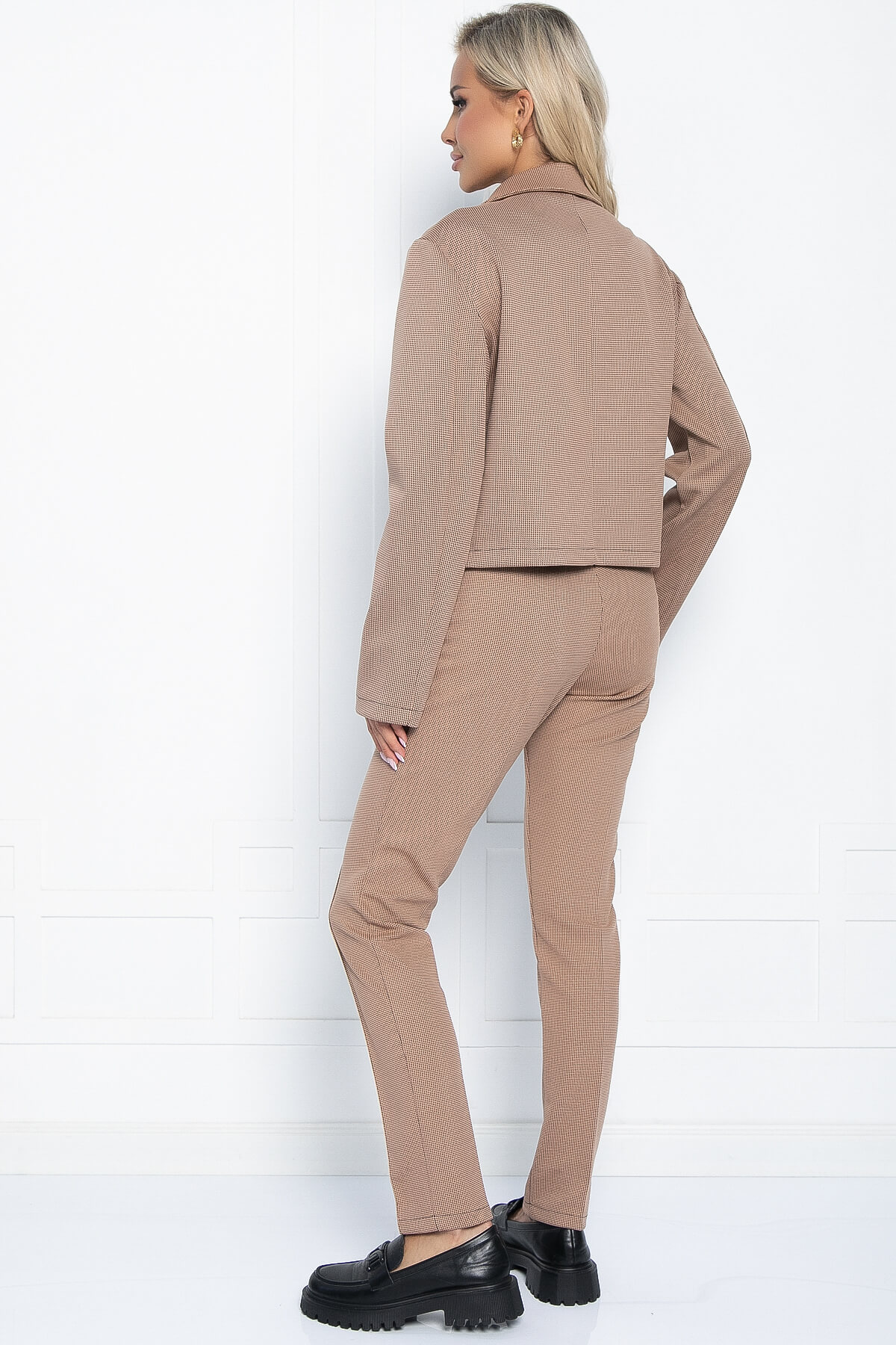 Костюм подчеркнёт вашу стройную фигуру и придаст вам особый шарм. Он сочетает в себе классические элементы делового стиля, что делает его универсальным: вы можете надеть его и в университет, и в офис, и даже на вечернее мероприятие. Верх костюма можно носить как самостоятельную часть гардероба, а брюки легко комбинировать с другими предметами одежды.