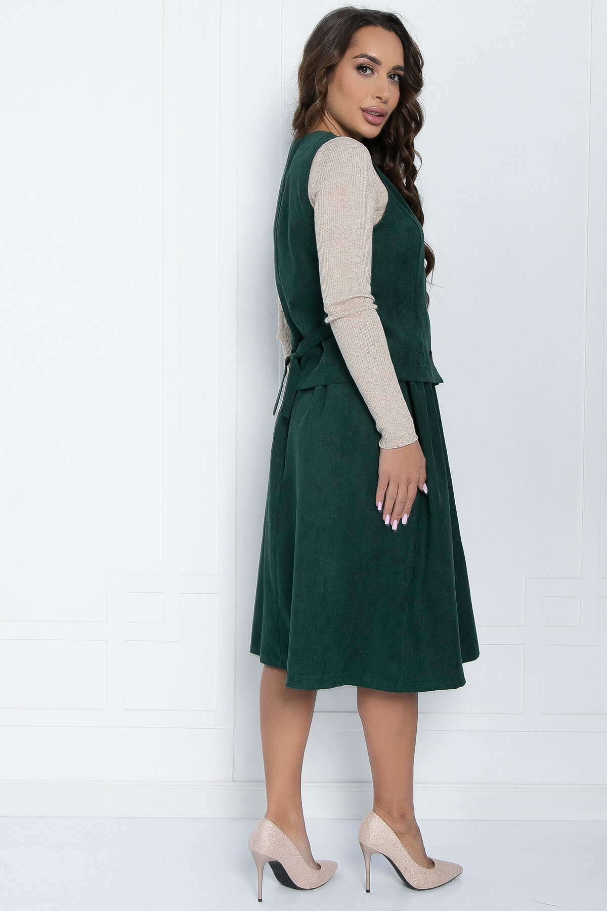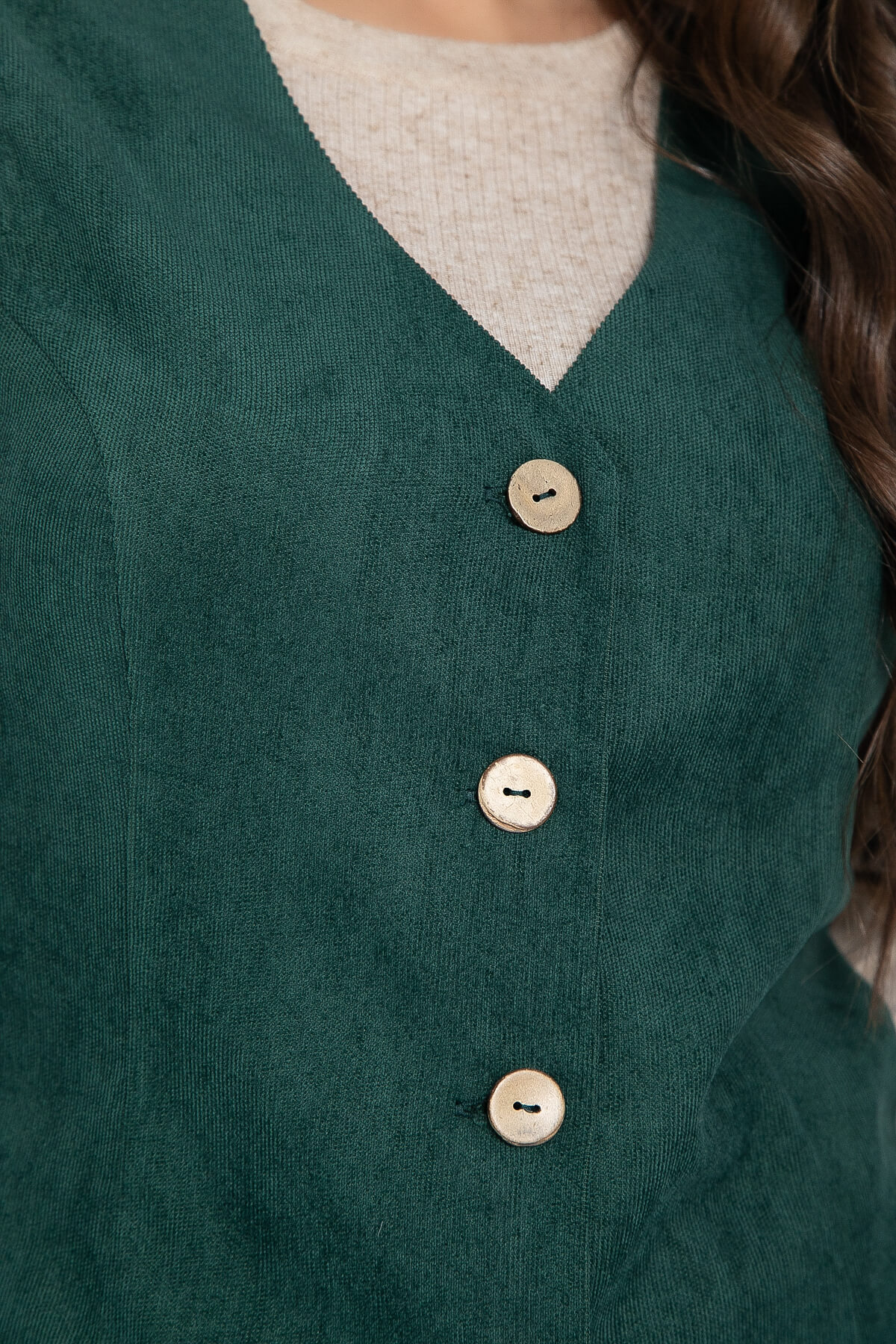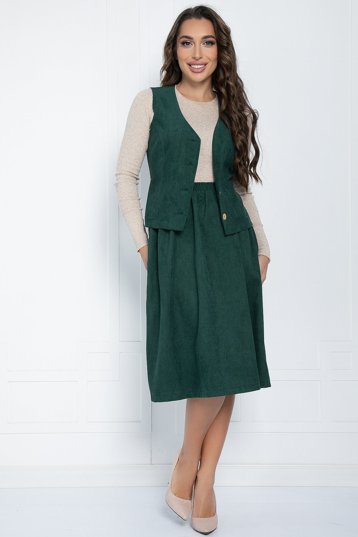Костюм премиум класса из жилета и юбки, который станет прекрасным дополнением в ваш базовый гардероб! Такой комплект будет отлично смотреться как на деловой встрече, так и на вечеринке или прогулке, добавляя выразительности и строгости в образ. Вельветовый костюм с юбкой и жилетом — это стильный и элегантный наряд, который сочетает в себе классику и современность. Верх на пуговицах без рукавов. Юбка длиной миди, без подкладки.