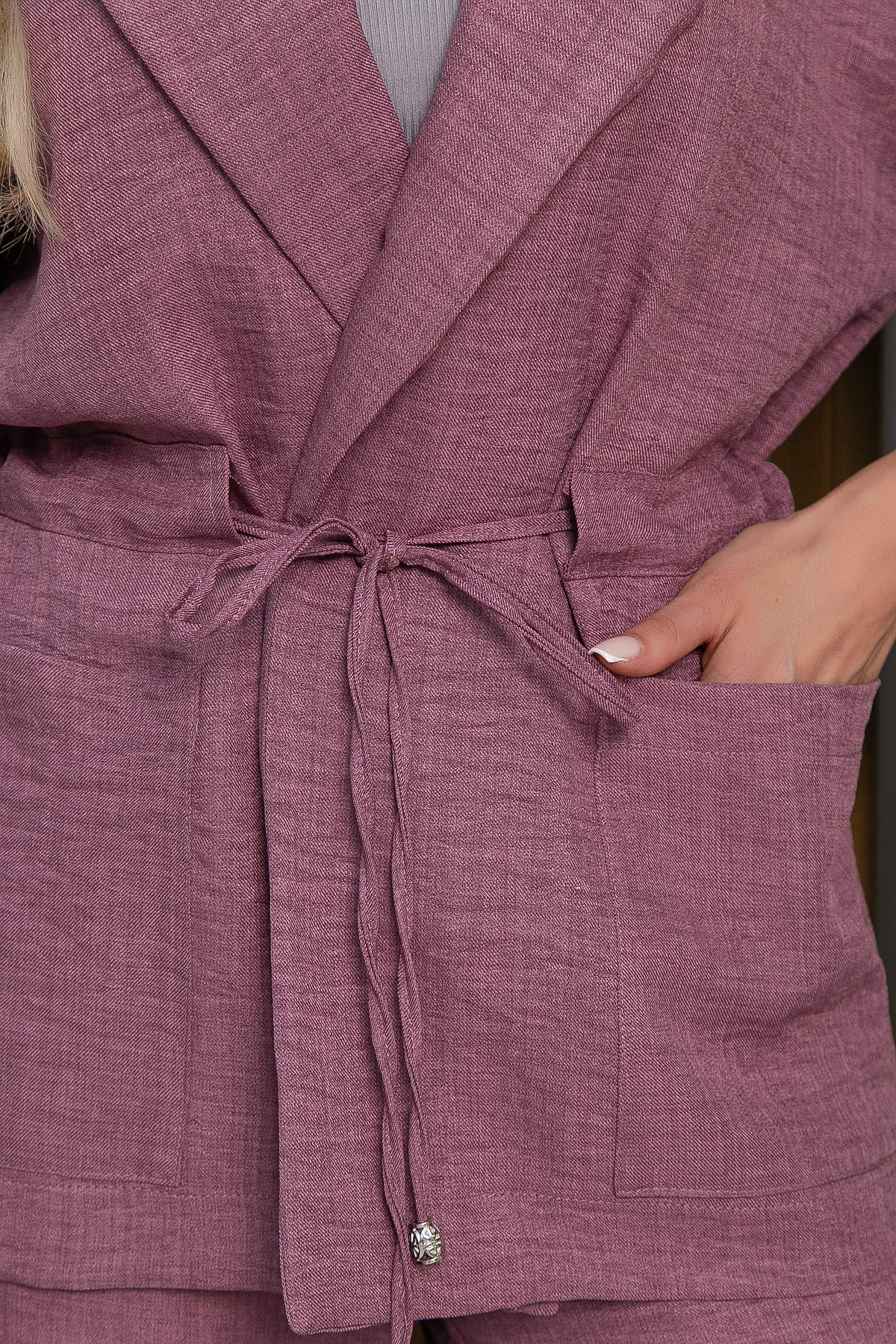 Представляем вам женский льняной костюм в ягодном оттенке — идеальный выбор для жарких летних дней! Пиджак с кулиской на талии позволяет подчеркнуть вашу фигуру, а брюки с резинкой по талии обеспечат удобную посадку. Этот костюм станет вашим незаменимым помощником в любых путешествиях и приключениях.