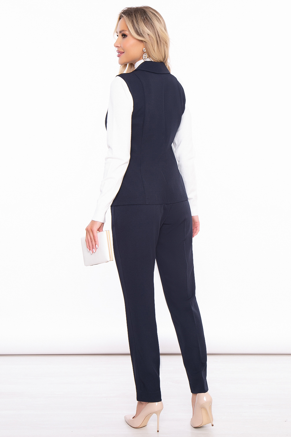Костюм из двух предметов - брюк и жилета идеально подойдет для офисных будней, а так же для деловых и официальных мероприятий. Костюм с легкостью создаёт красивый деловой образ, его можно сочетать с блузой, водолазкой или джемпером.