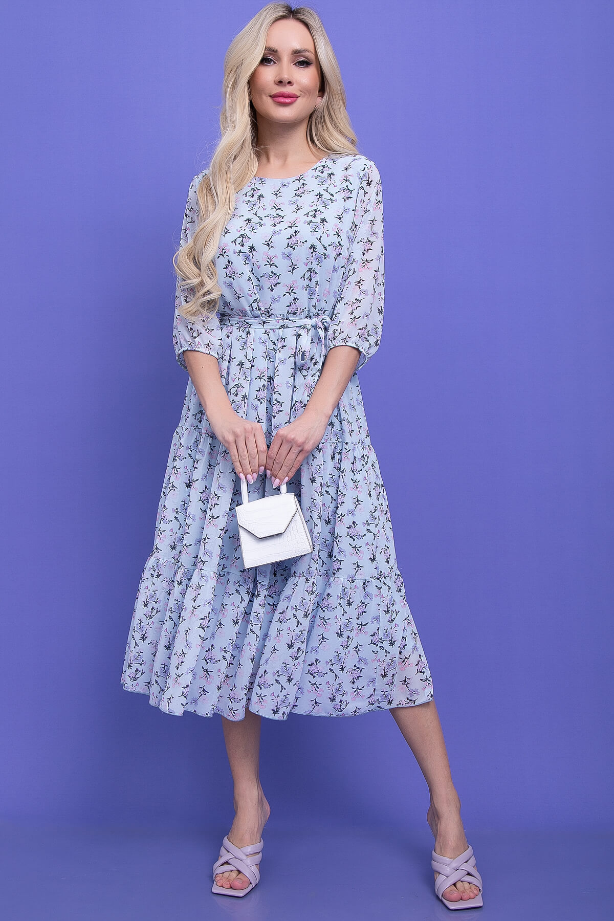 Платье из шифона с цветочным принтом украсит ваш нарядный образ и создаст прекрасное настроение. Нежная и струящаяся фактура ткани выгодно подчеркнут достоинства фигуры, а пояс из основной ткани сделает акцент на талии.