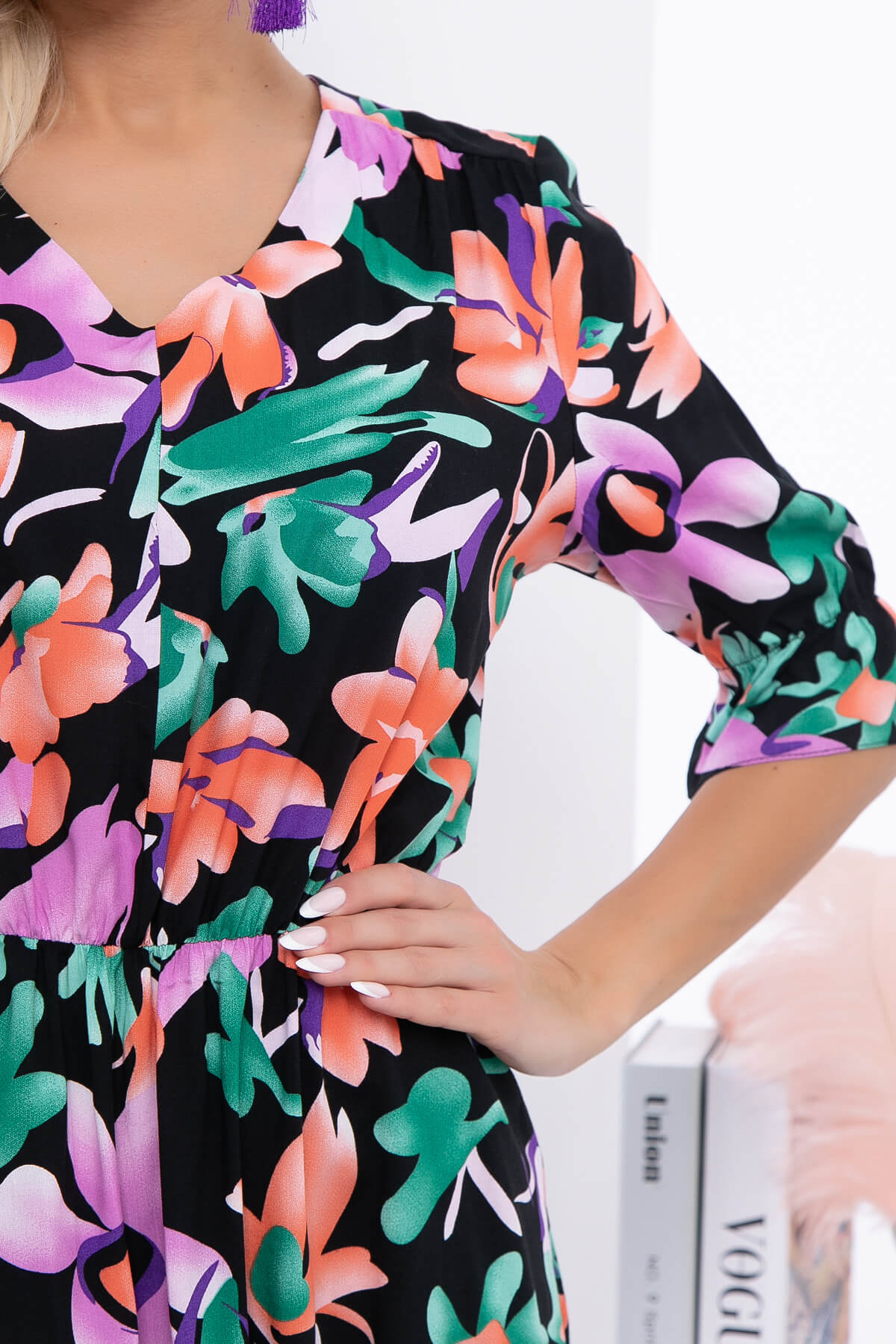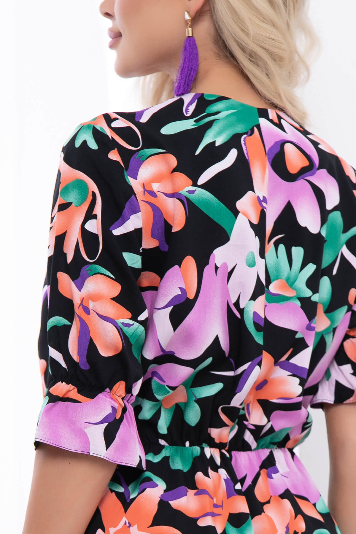 Платья с ярким принтом на пике популярности! В таком платье вы будете чувствовать себя привлекательно и женственно. Рукав укороченный, украшен рюшей. По талии на резинке. Такое платье отлично подойдет как на прогулку, так и на торжественное мероприятие. В любом случае, вы будете чувствовать себя роскошно!