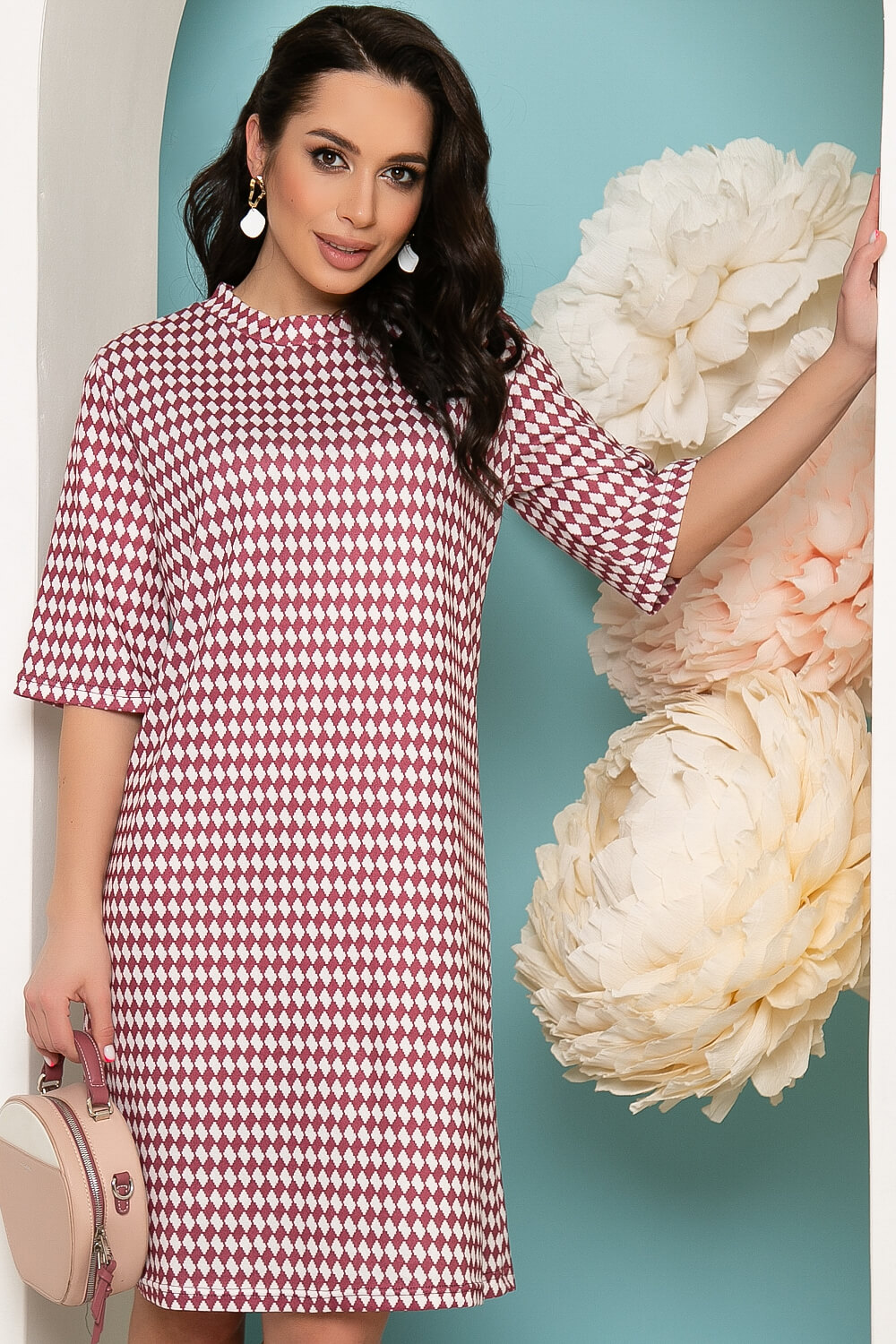 Трикотажное платье прямого кроя средней длины - идеальный вариант на каждый день! Комфорт и удобство Вам обеспечены. Рукав втачной, короткий. Горловина оформлена мягкой стойкой.