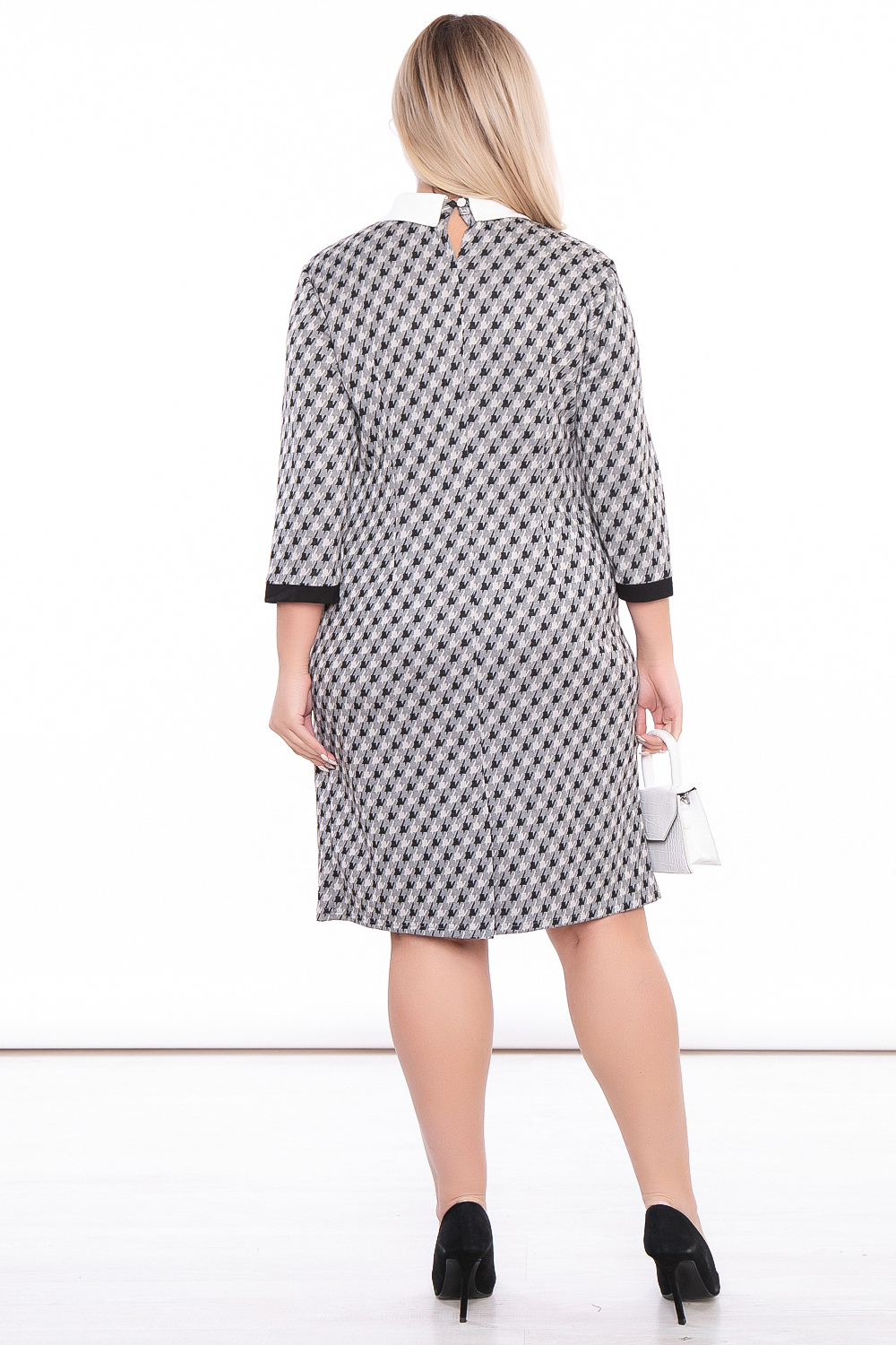 Женственное платье в офисном стиле с отложным воротничком. Рукав втачной, три четверти, на манжете. По переду накладные кармашки, сзади на юбке шлица. Платье без замков, без подкладки. Сзади застёгивается на застёжку "петля-пуговица".
