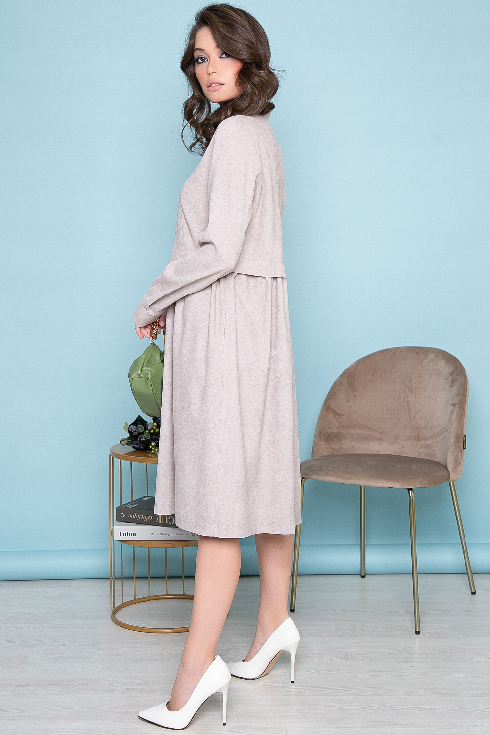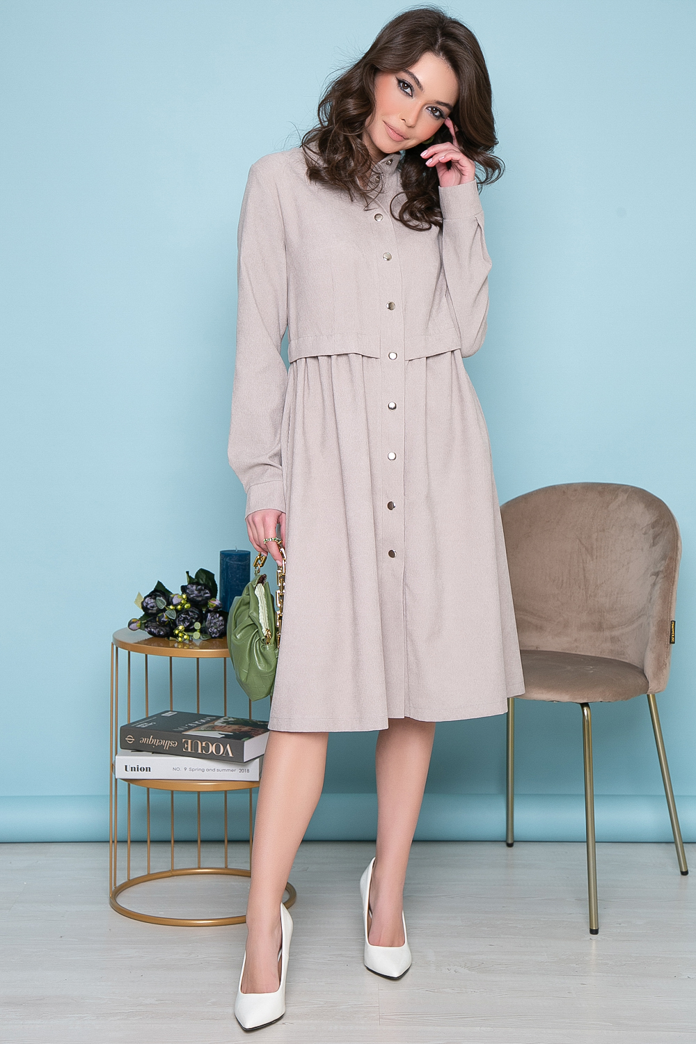 Вельветовое платье в сером оттенке станет незаменимым вариантом на весенний период. Комфорт, удобство, стильный фасон, гармоничная длина и ничего лишнего! Это абсолютно беспроигрышный вариант на каждый день! Базовое платье полуприталенного силуэта, талия отрезная. По линии лифа обработана складка, воротник-стойка, рукав втачной, длинный, низ на манжете. По переду притачная планка на функциональных кнопках. В боковых швах карманы.