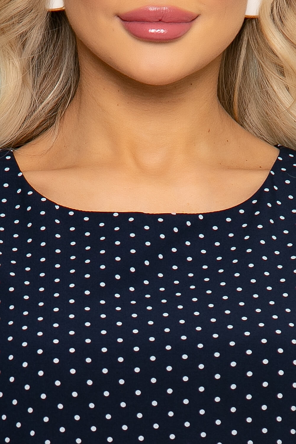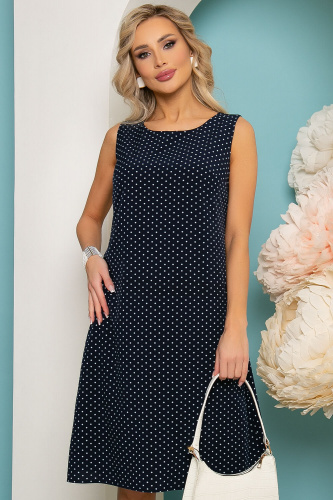 Платье полуприталенного силуэта в горошек без рукава - лаконичный женственный вариант на каждый день. Фасон и цвет предусматривает множество сочетаний. Дополните его жакетом, джинсовой курткой, кардиганом или бомбером, всё зависит от ситуации и Вашего желания.