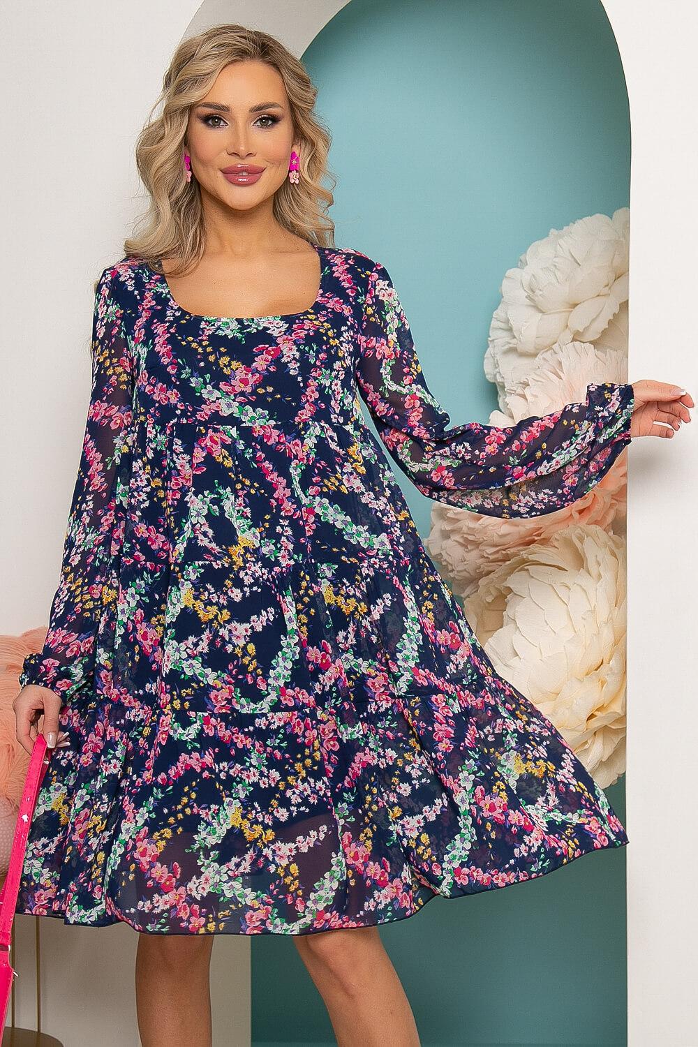 Невероятное, женственное шифоновое мини. Платье свободного кроя, на подкладке. Рукав втачной, длинный, низ на резинке. Юбка состоит из шикарных воланов, талия завышена. В таком платье Вы действительно будете милее всех!